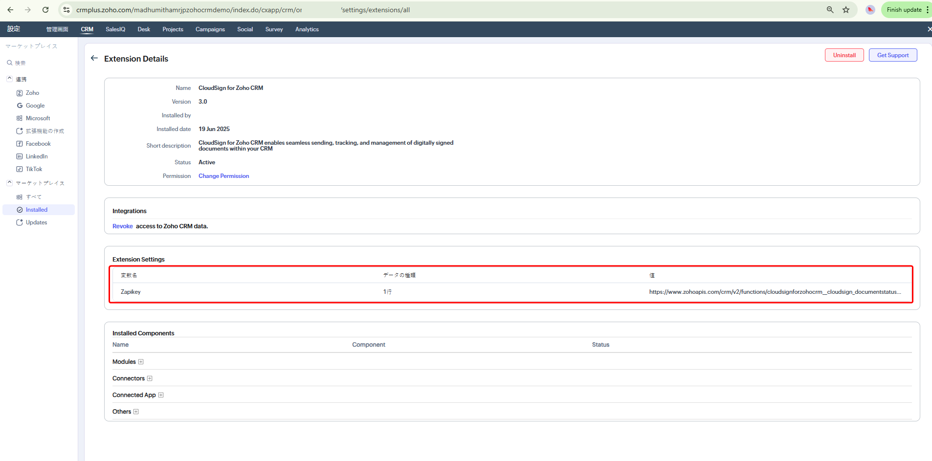 ステータスの変化をリアルタイムで更新するには、拡張機能をインストールした後、CloudSign側にWebhookを設定する必要があります。