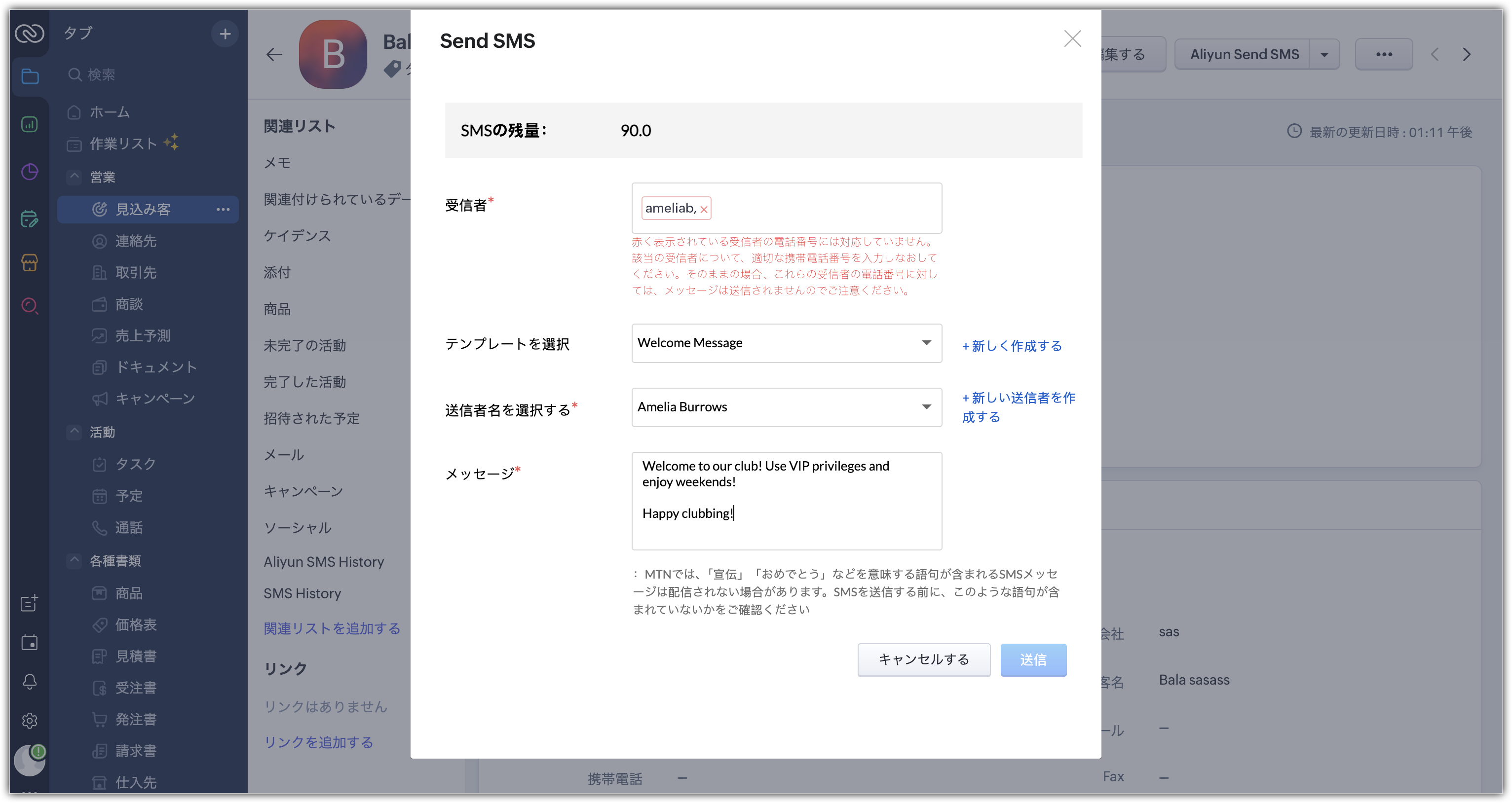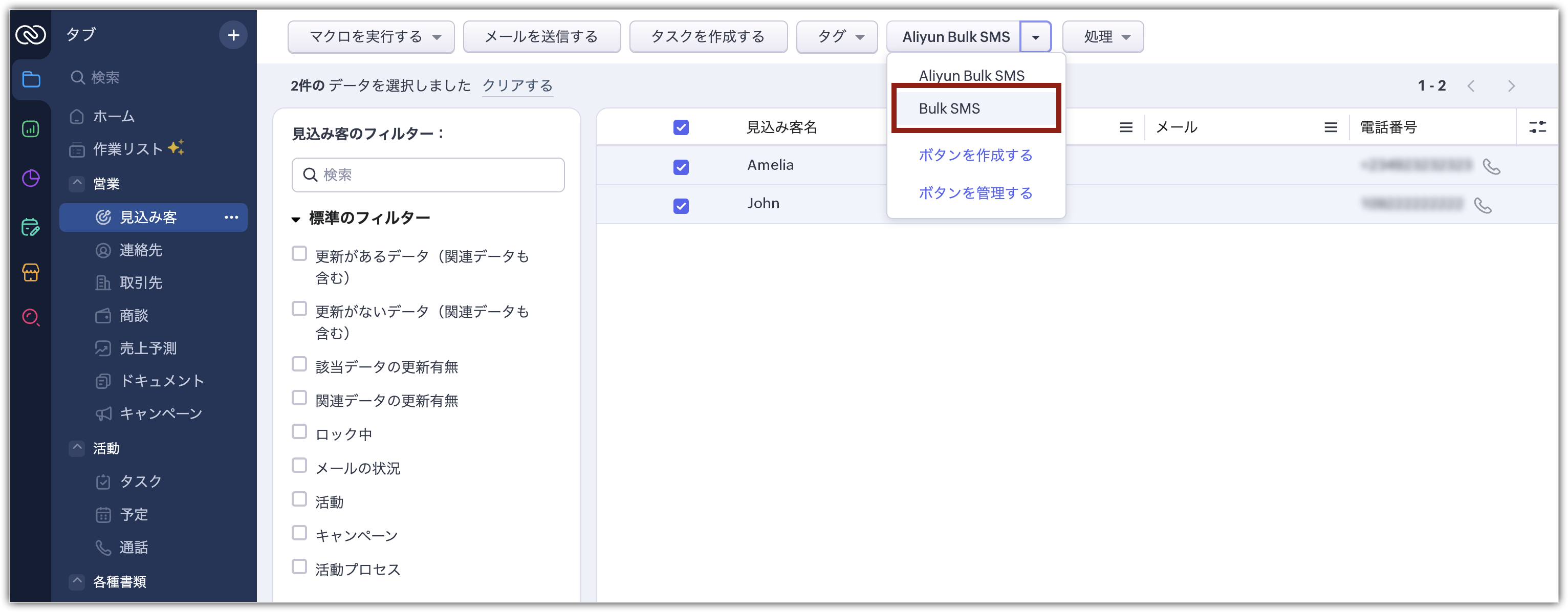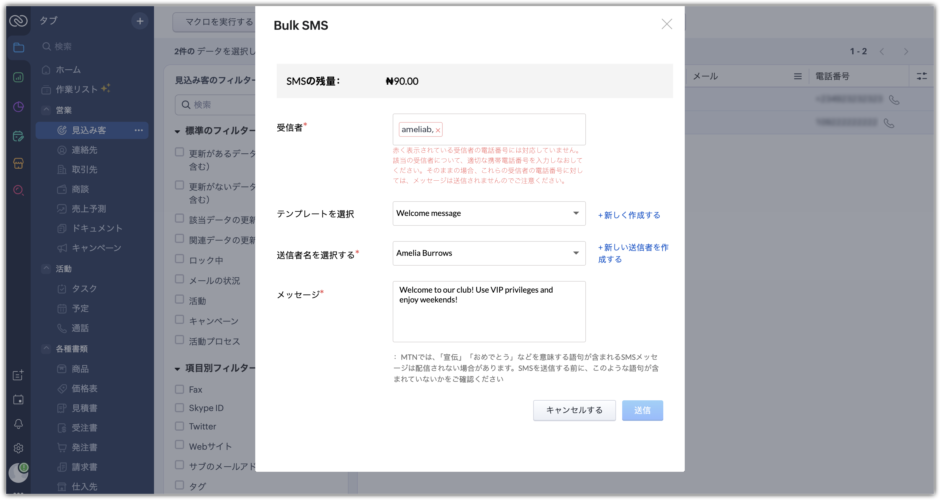 NaijaSMSPortal拡張機能を利用すると、見込み客/連絡先に対して個別にSMSメッセージを送信できます。また、複数の見込み客/連絡先に対して一括でSMSメッセージを送信することも可能です。