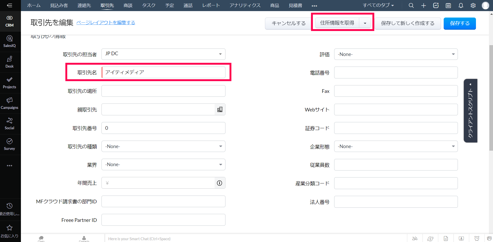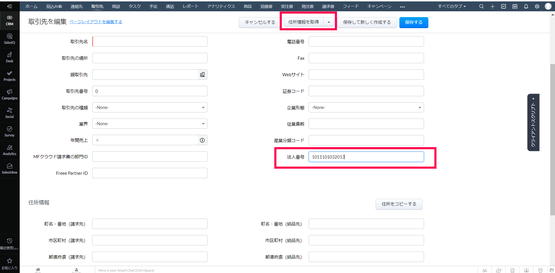 Zoho CRMで取引先の住所情報を正確に入力するには
