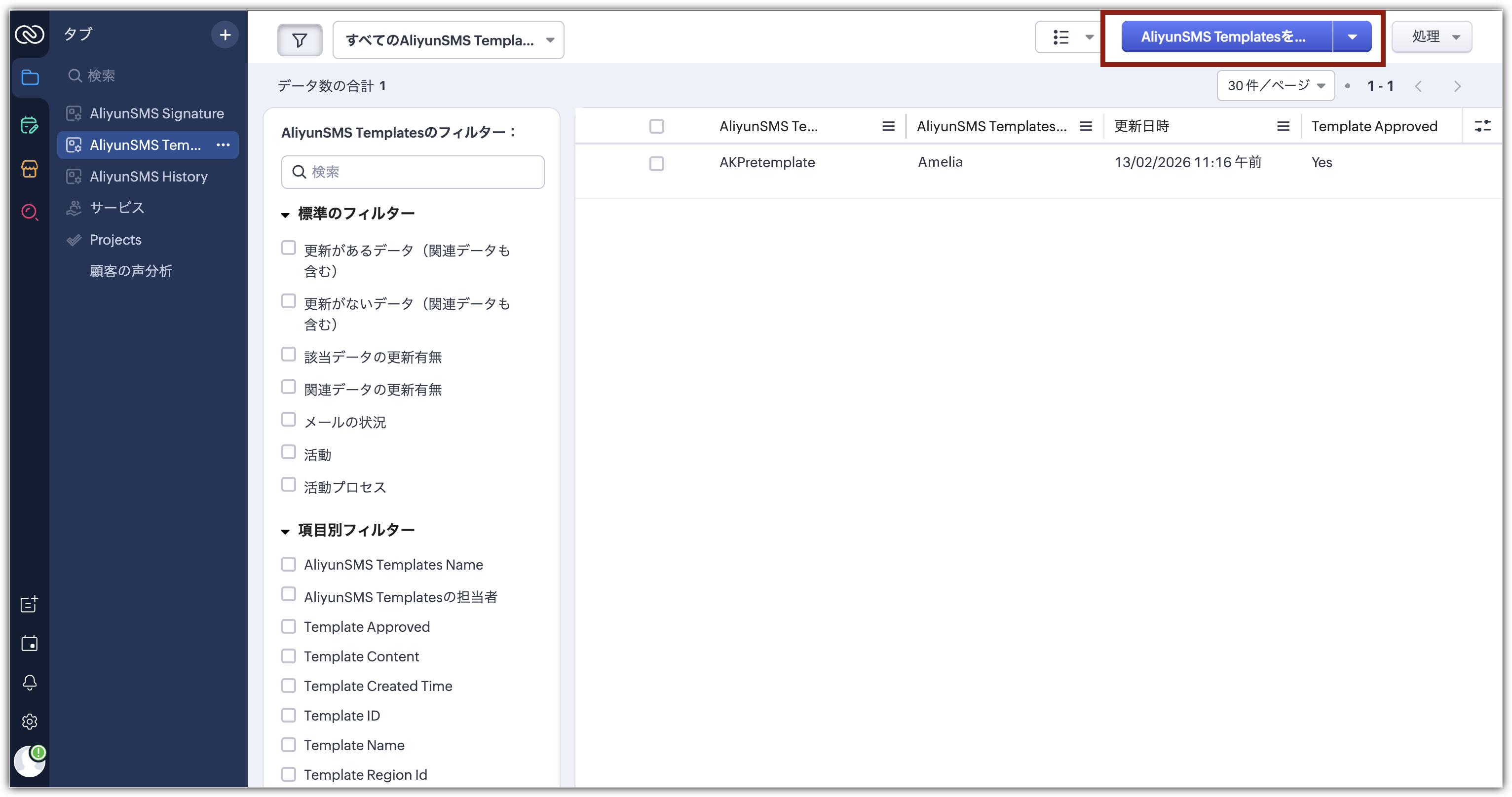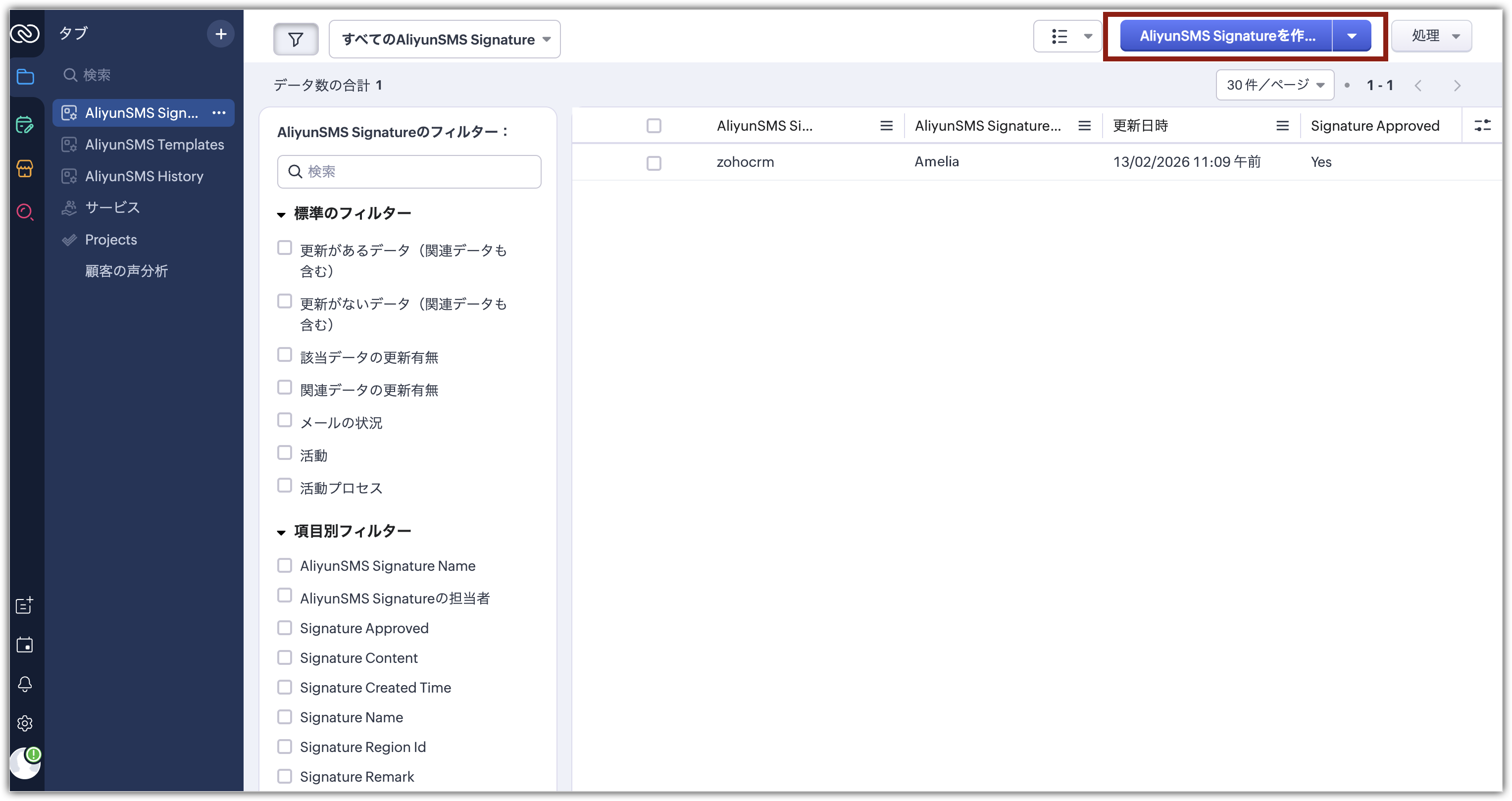Zoho CRMのAliyun SMS拡張機能