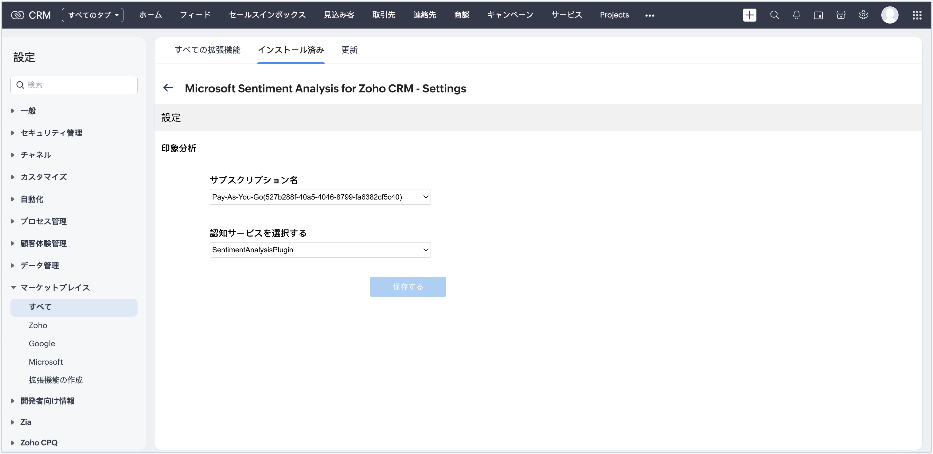 Zoho CRMのMicrosoft感情分析の拡張機能