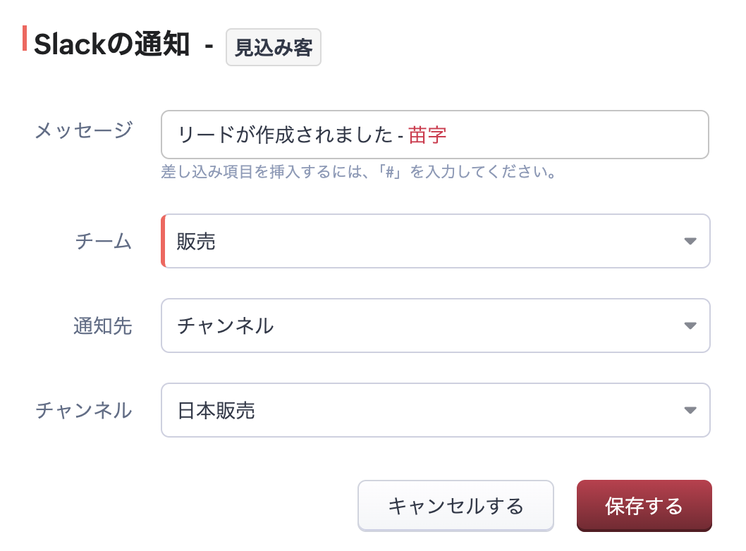 - ワークフロールール(自動処理ルール)ですぐに実行する処理を設定し、Slackのチーム内のユーザーやチャンネルのメンバーに通知する