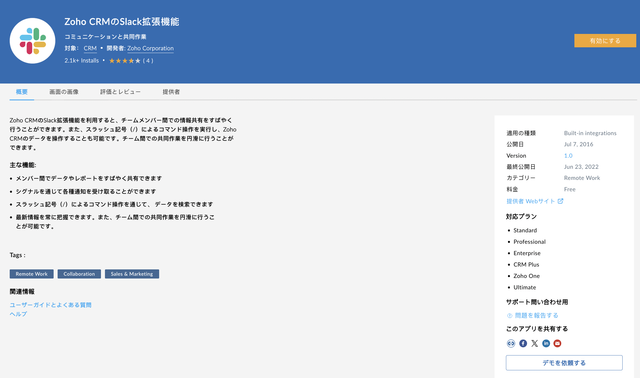 - Slackのチーム内のユーザーやチャンネルにZoho CRMのデータを共有する(概要表示のあるタブ内のデータが対象です)