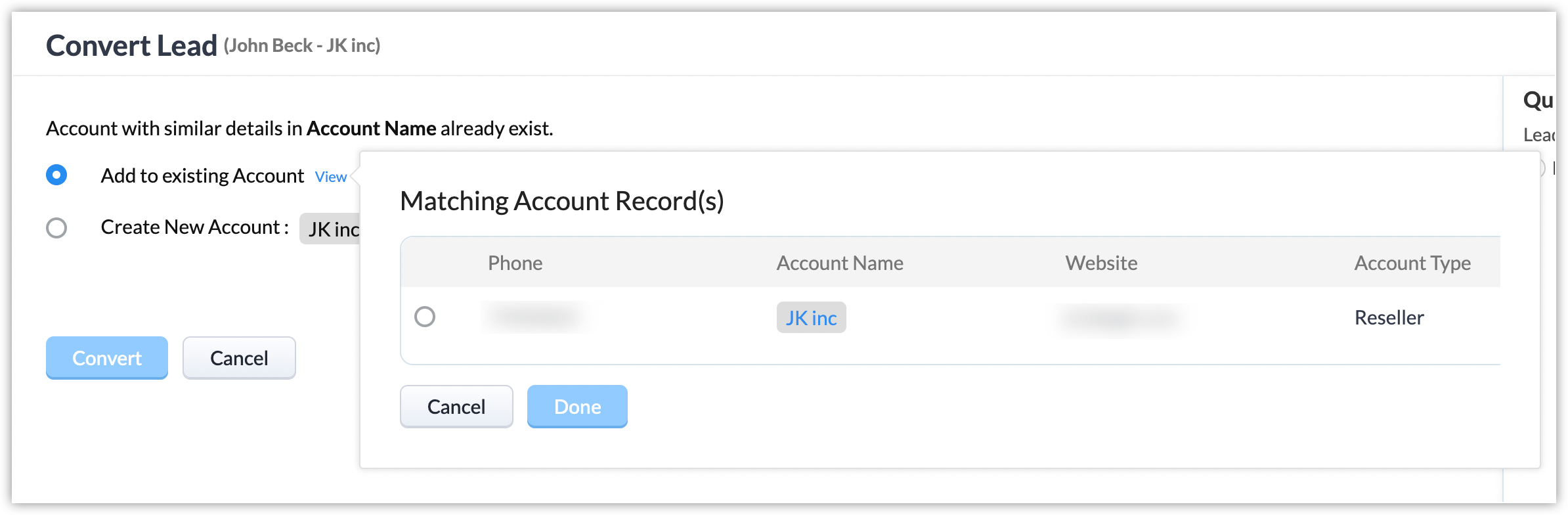 これにより、Zoho CRMアカウントに新しい見込み客データが作成されます。