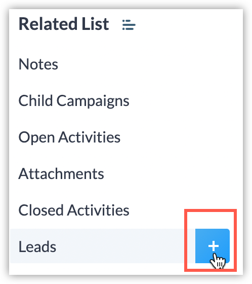 [見込み客]の関連リストにカーソルを合わせると表示される[+]アイコンをクリックします。