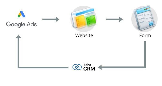 Zoho CRMとGoogle 広告の連携 機能を使用すると、Google 広告アカウントとZoho CRMアカウント間で、広告と商談や売上のデータを連携できます。具体的にできることは以下のとおりです。
