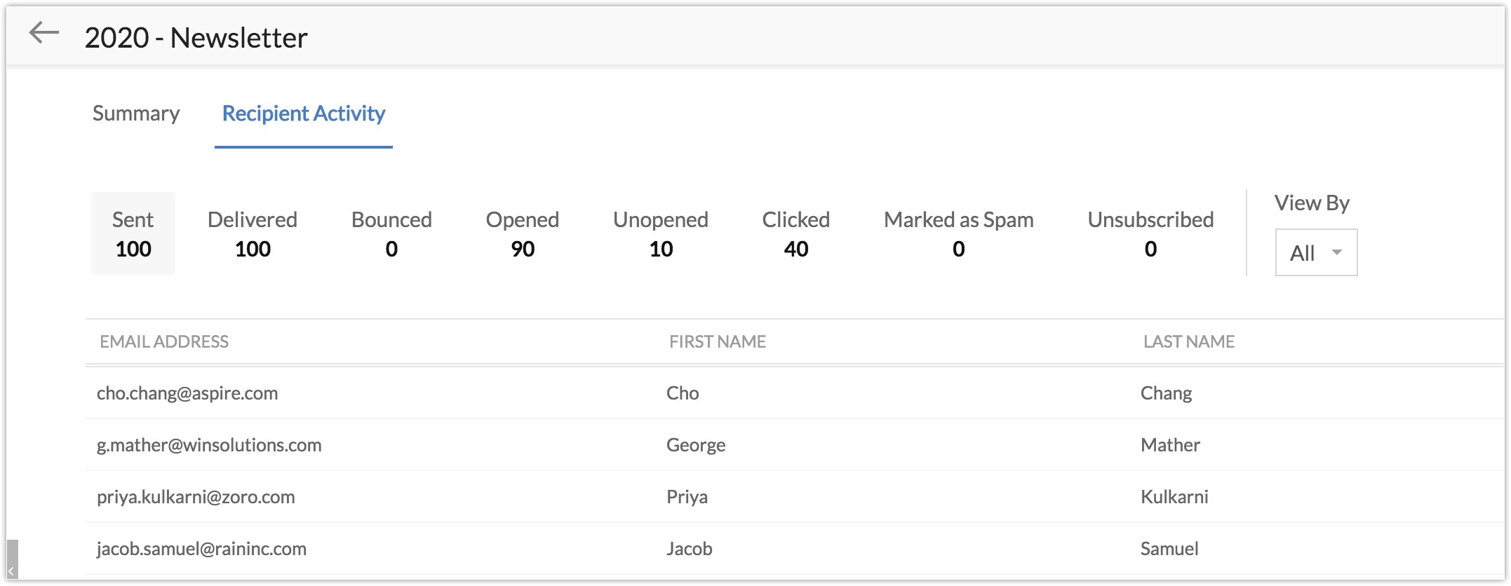 Zoho Campaignsを通じて配信したキャンペーンの配信結果の概要を表示するには
