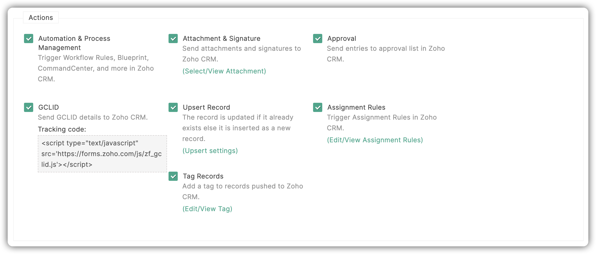 関連情報:Zoho FormsとZoho CRMの連携において実行できる処理