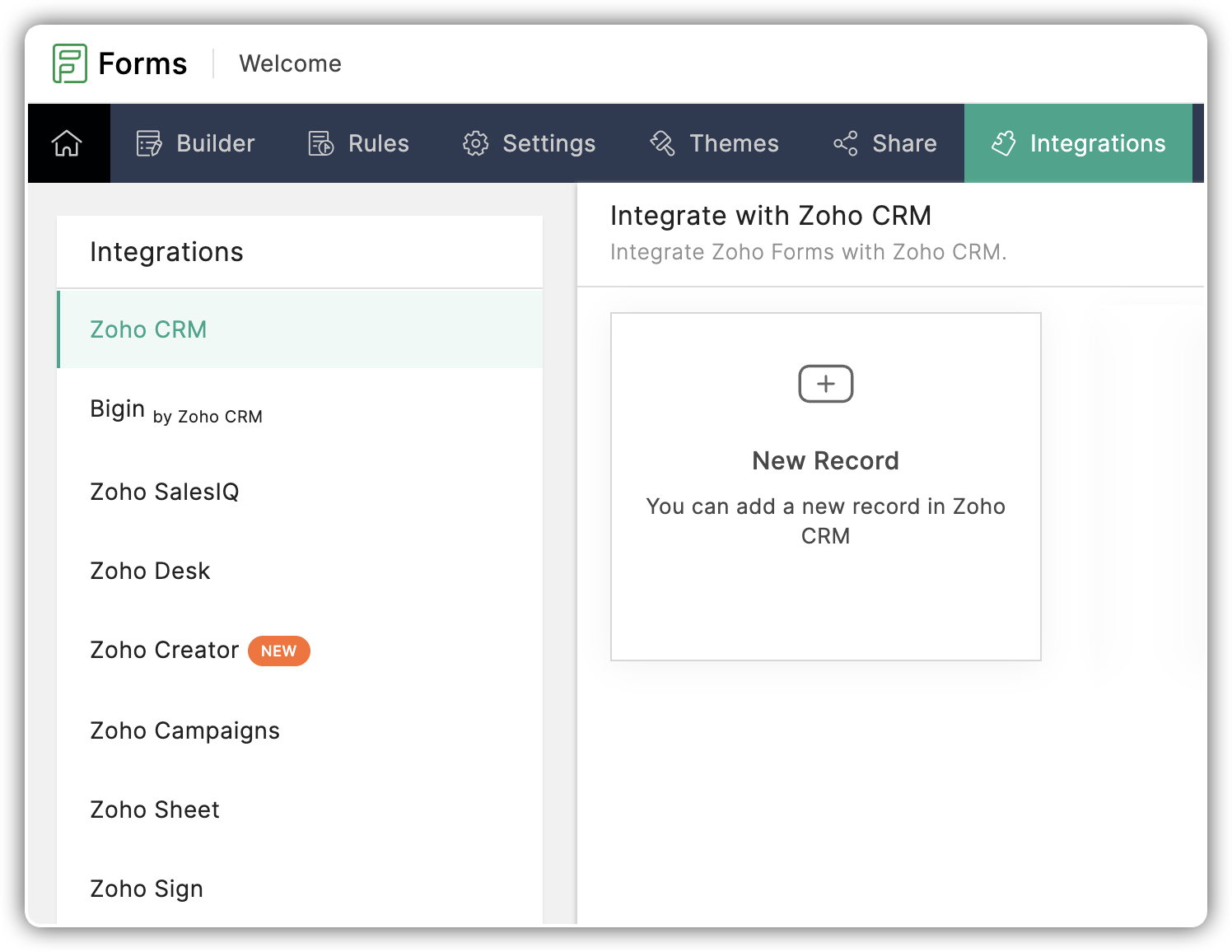 Zoho Forms連携を設定するには、次の手順を実行します。
