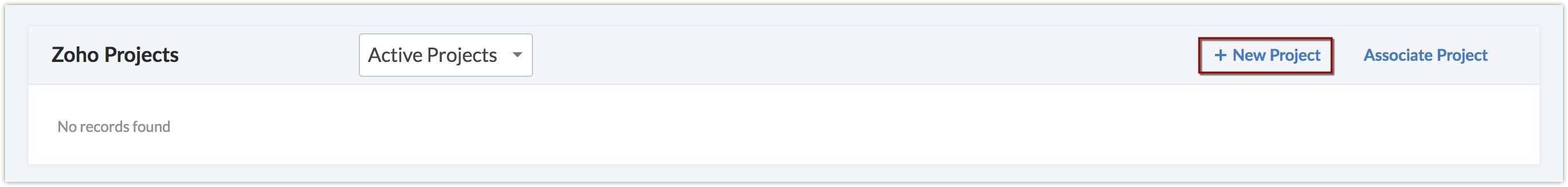 - データの詳細ページで、[Zoho Projects]関連リストの右上にある[新しいプロジェクト]をクリックします。