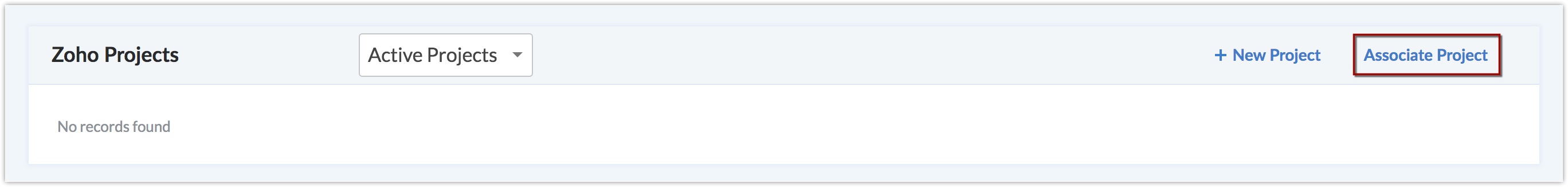 Zoho CRMでは、作成済みの既存のプロジェクトを取引先、連絡先、商談に関連付けることもできます。プロジェクトの関連付け/編集を行うには、Zoho Projectsでのプロジェクトの編集権限が必要です。