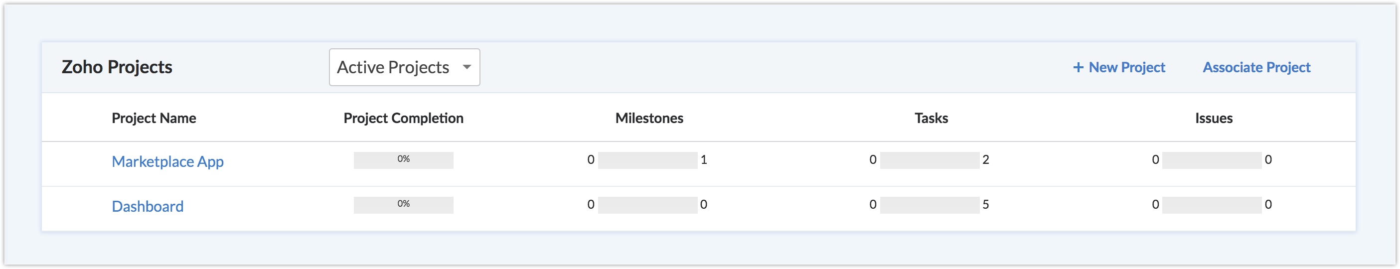 - データの詳細ページで、[Zoho Projects]関連リストに移動します。