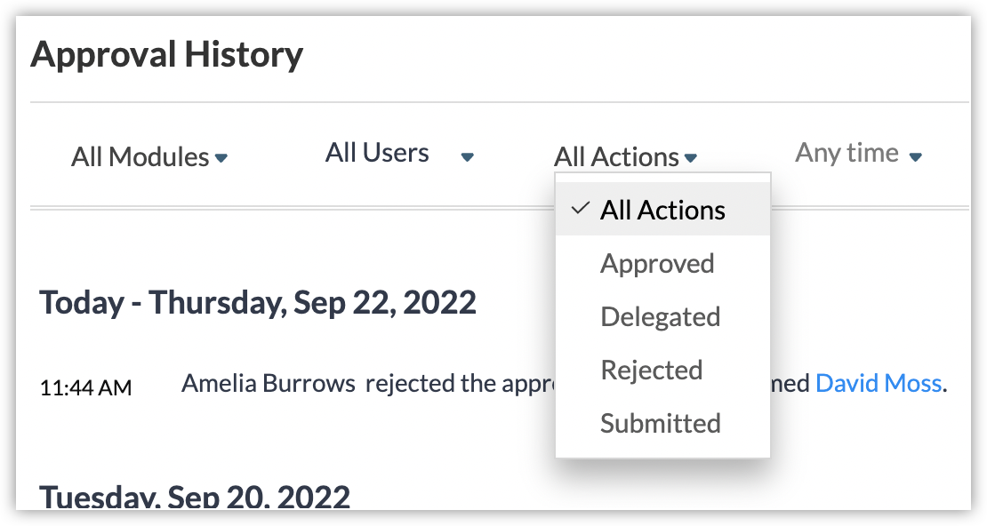 上記のフィルターに従い、承認の履歴が表示されます。