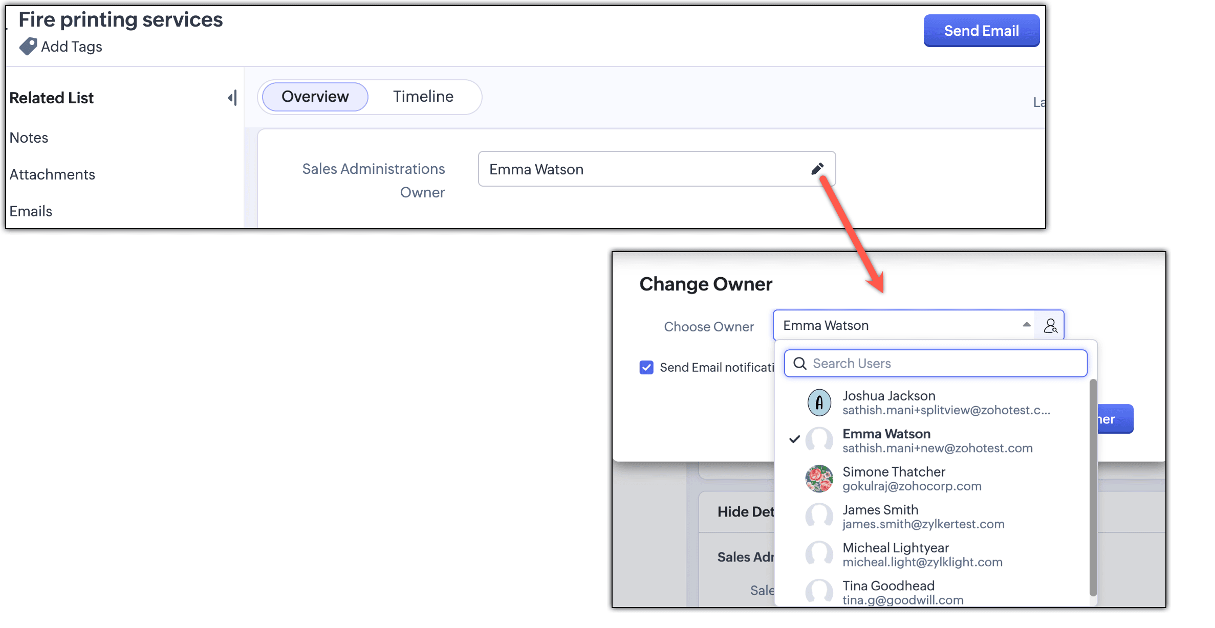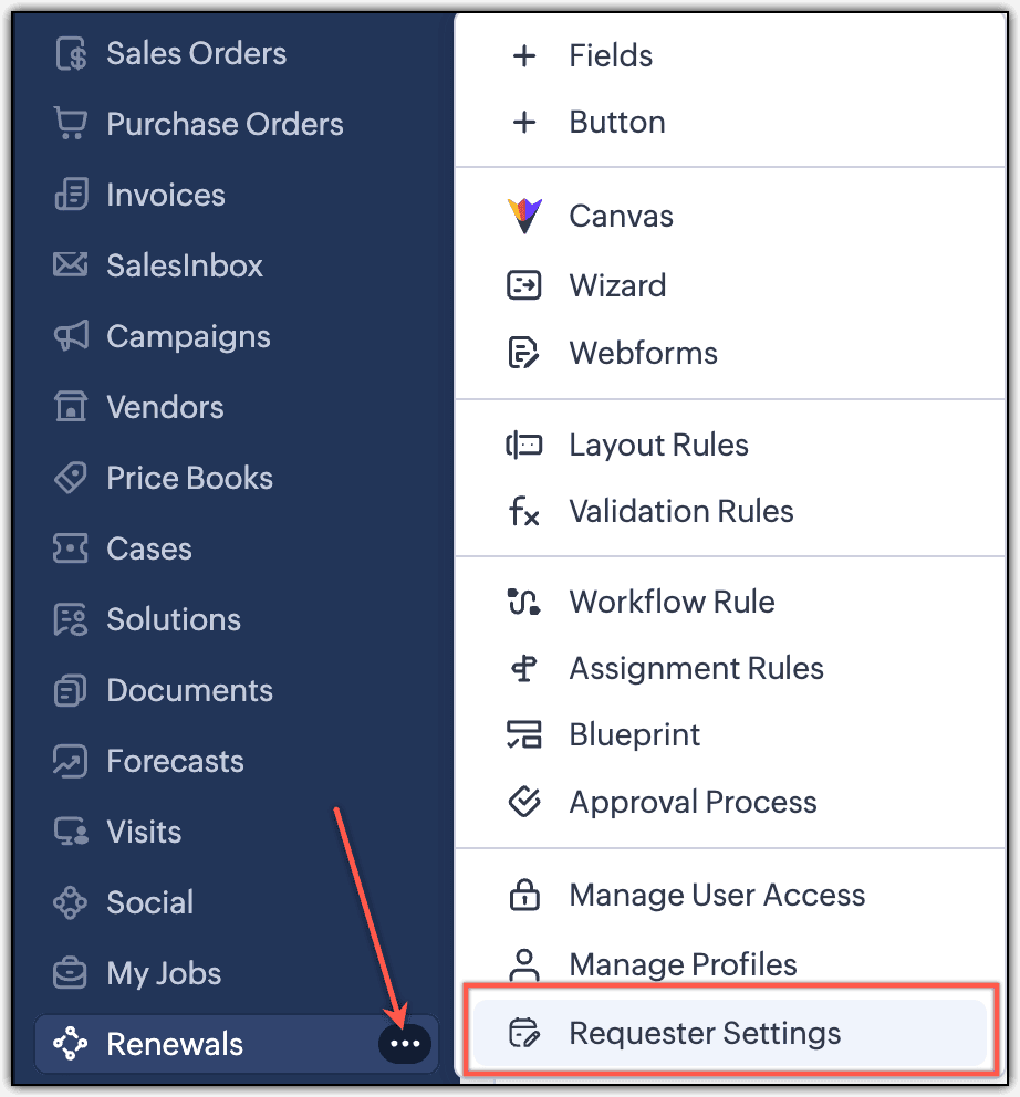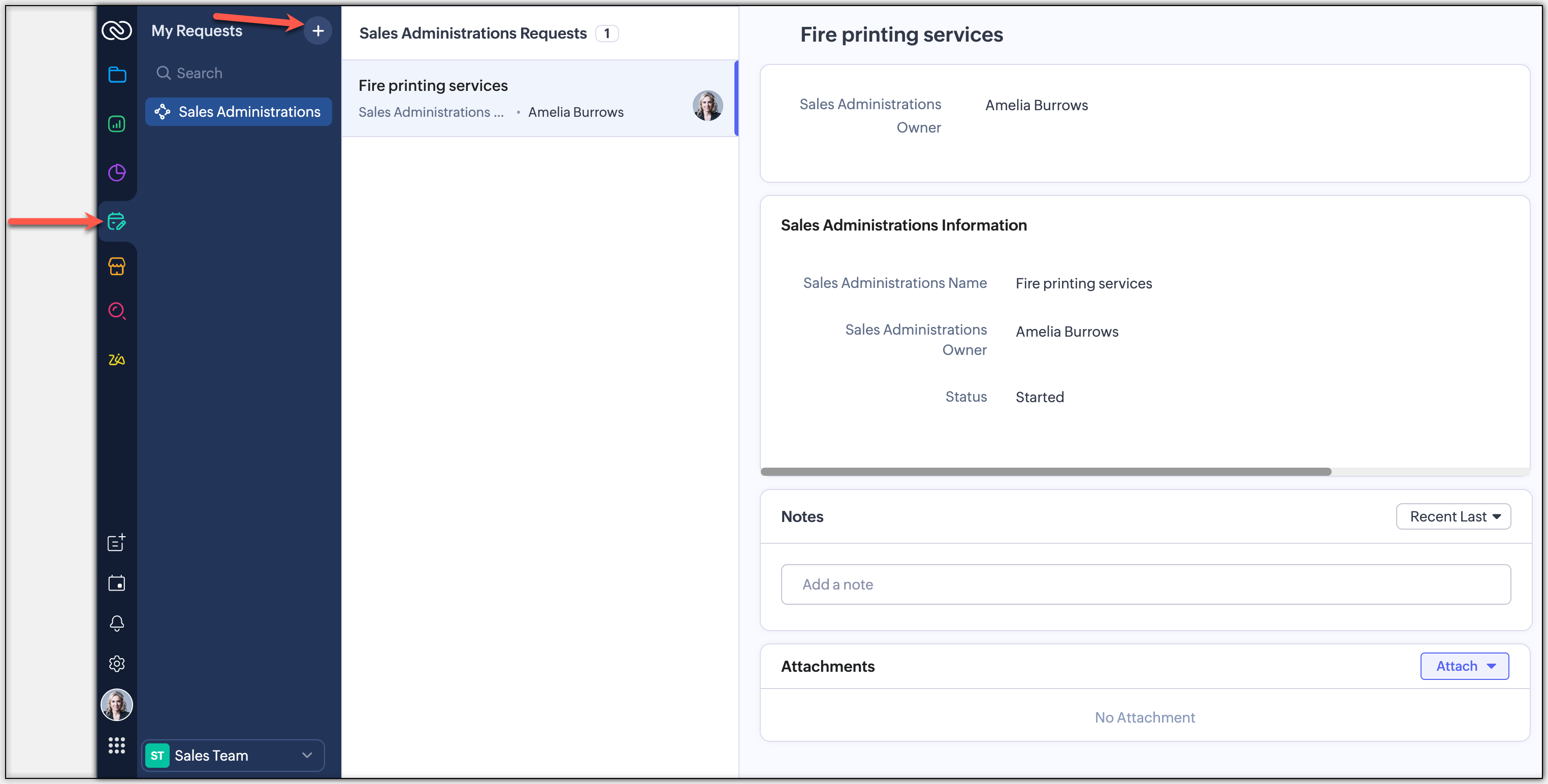 Zoho CRMでは、他チームとのやりとりに[申請]タブを利用することで、こうした問題を回避できます。他部門への依頼は、すべて[申請]タブで管理できます。