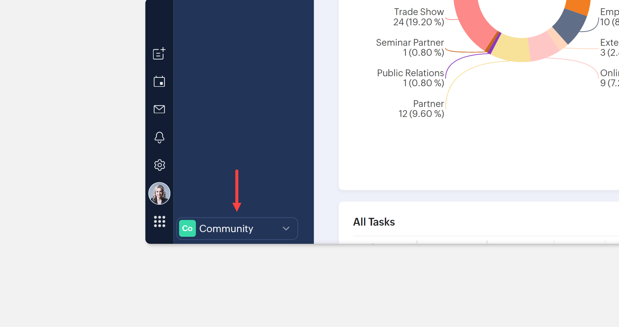 1. 画面左側のメニューでタブアイコンをクリックし、チームスペースの選択リストをクリックます。