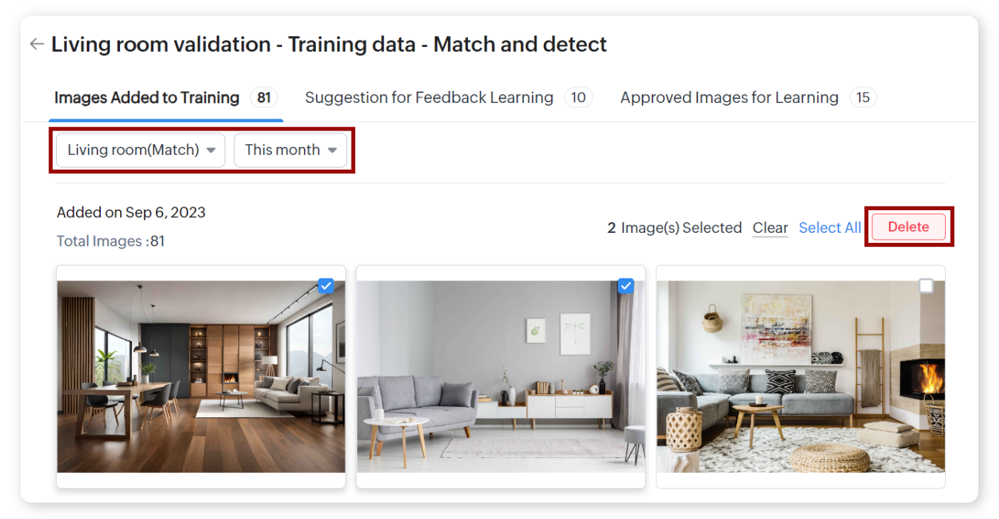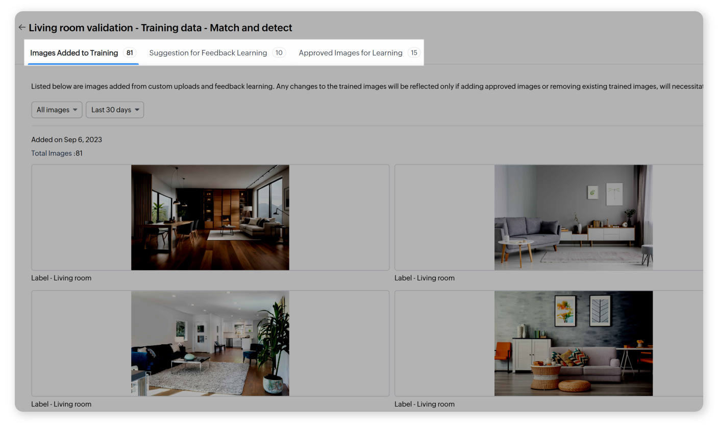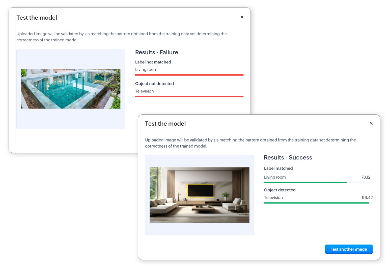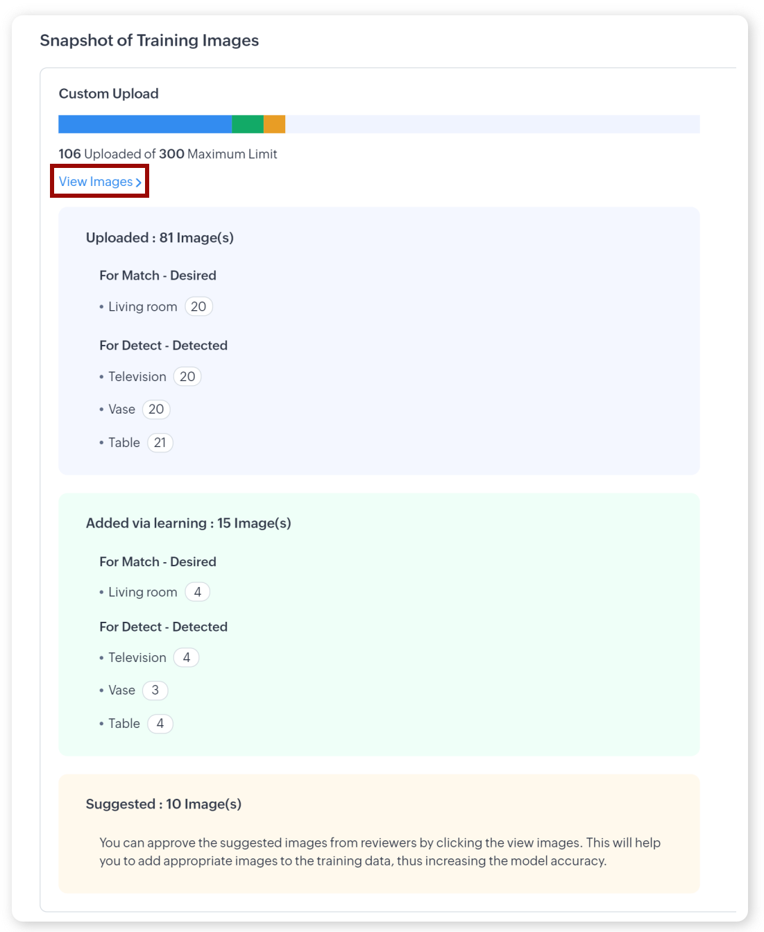 画像の追加や削除により、学習データの40%以上が変更されると、自動的にZiaの再トレーニングが行われます。再トレーニングが完了すると、最新の学習データに基づいて検証が実行されるようになります。