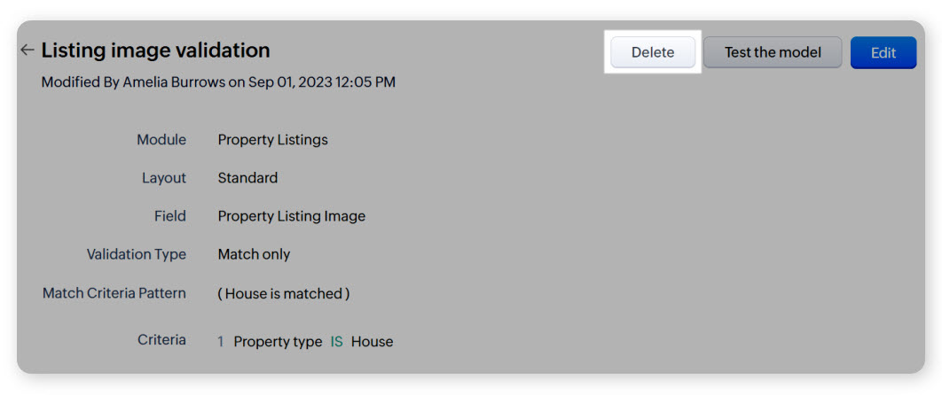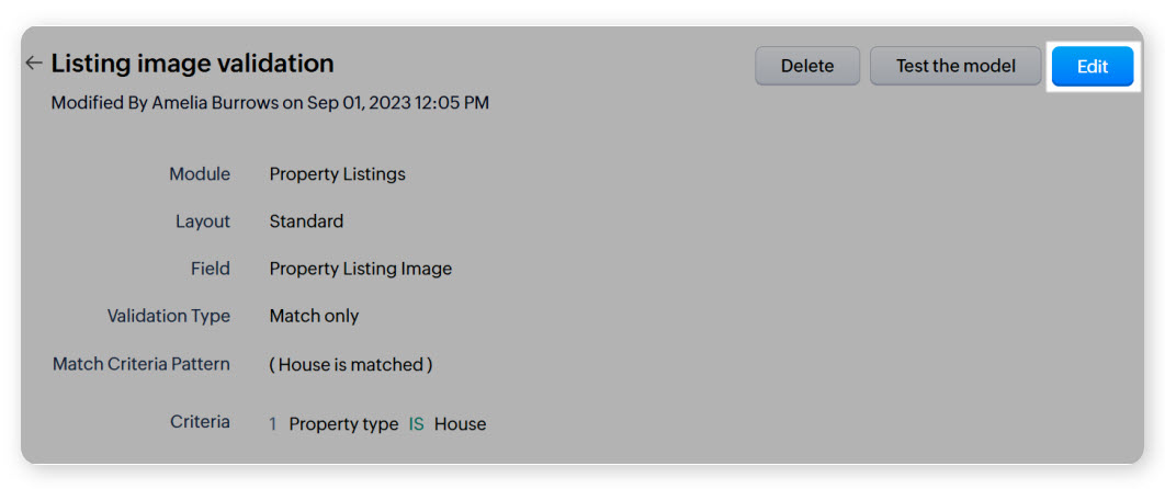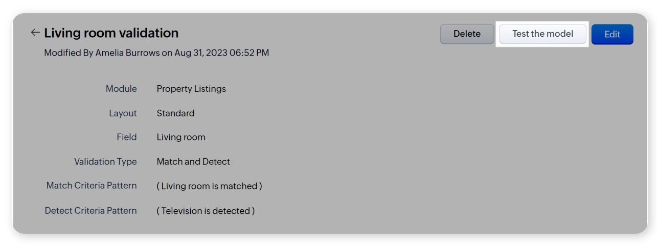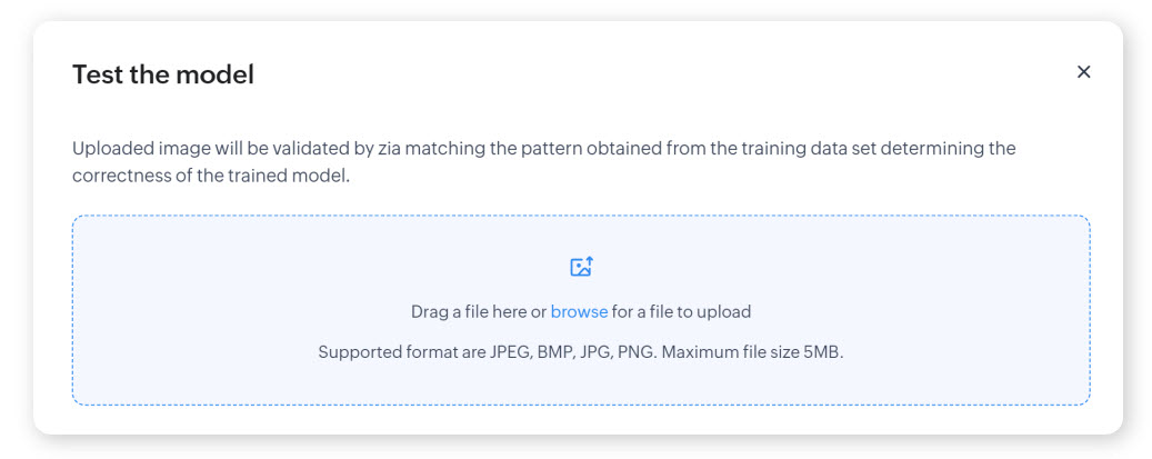 ルールを作成すると、モデルをテストできるようになります。Ziaが学習データに基づいて正しく画像を正しく検証できるかどうかを確認し、必要に応じて、学習データを修正することが可能です。モデルをテストするには、以下の操作を実行します。
