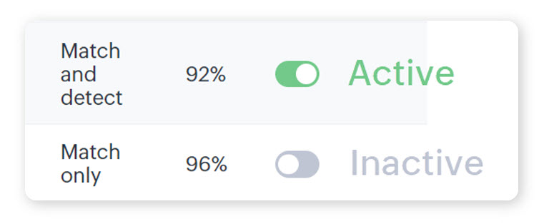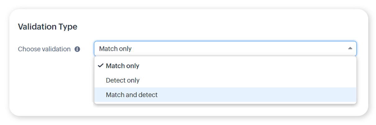 現時点では、[検出のみ]と[照合と検出]の検証の種類は、米国(US)のデータセンターに登録されているアカウントにおいてのみ利用可能です。