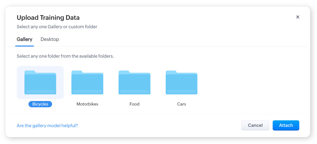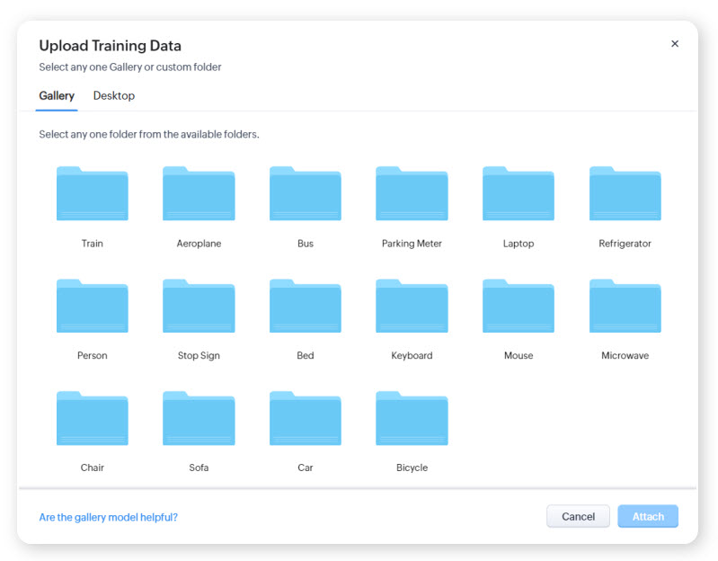 - 学習データを、ギャラリーから選択するか、デバイスからアップロードします。デバイスからアップロードする場合: