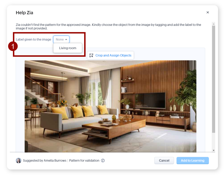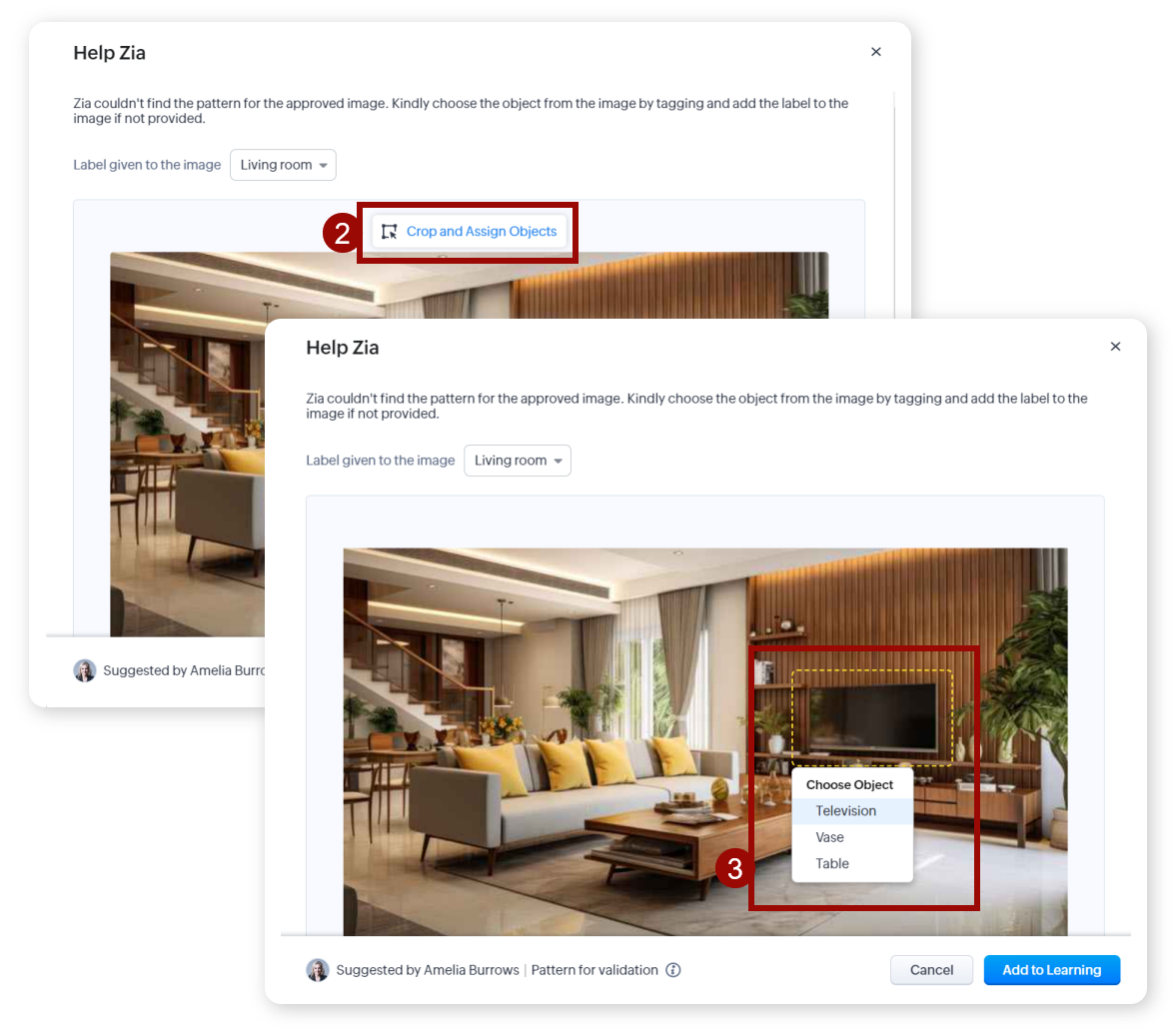 - [ルールを管理するユーザーに対して手動で提案された内容です。ユーザーは、提案された内容を確認して承認することができます。]:承認者は、Ziaによって誤検出された画像を学習データの候補として手動で登録できます。その後、ルールの管理者が、候補の画像を承認すると、該当の画像が学習データに追加されます。