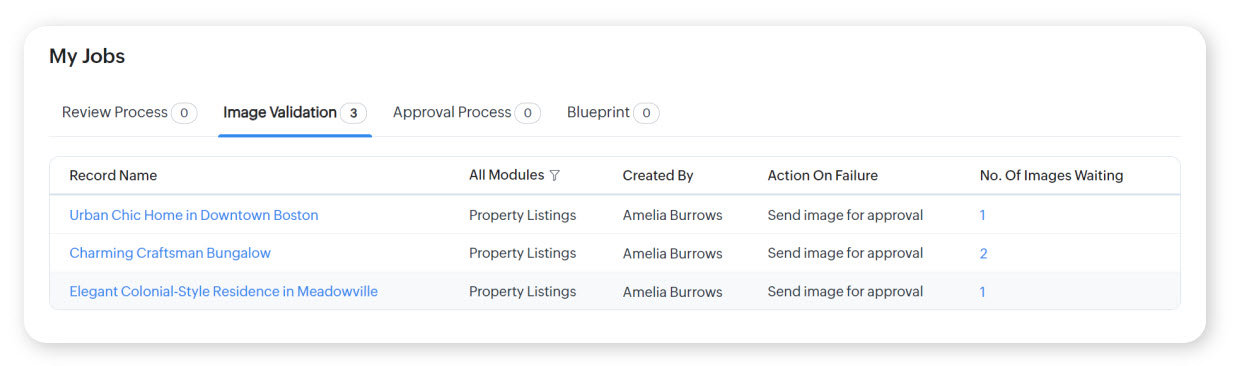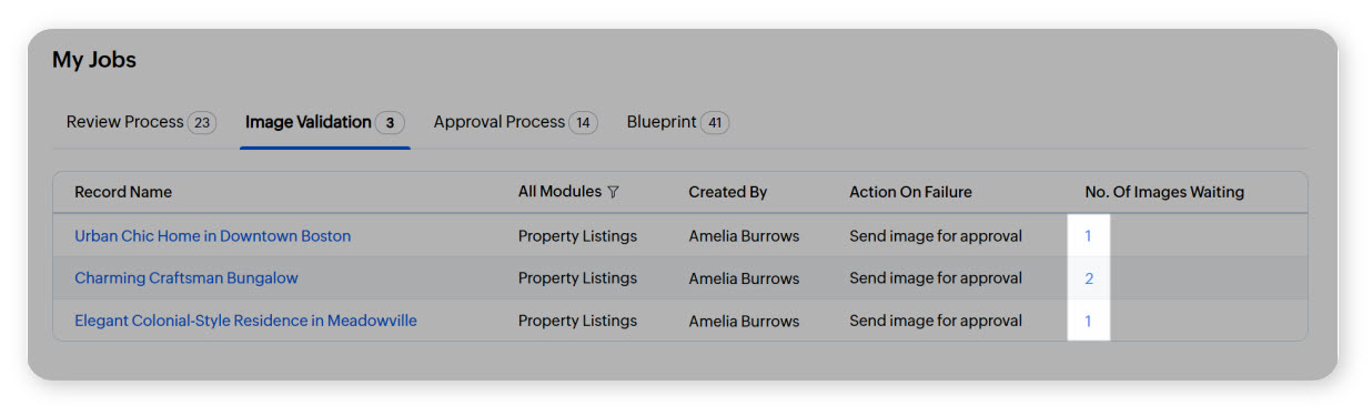 データの作成時にZiaによって画像検証できなかった場合、データは作成されますが、画像は承認待ちのステータスになります。
