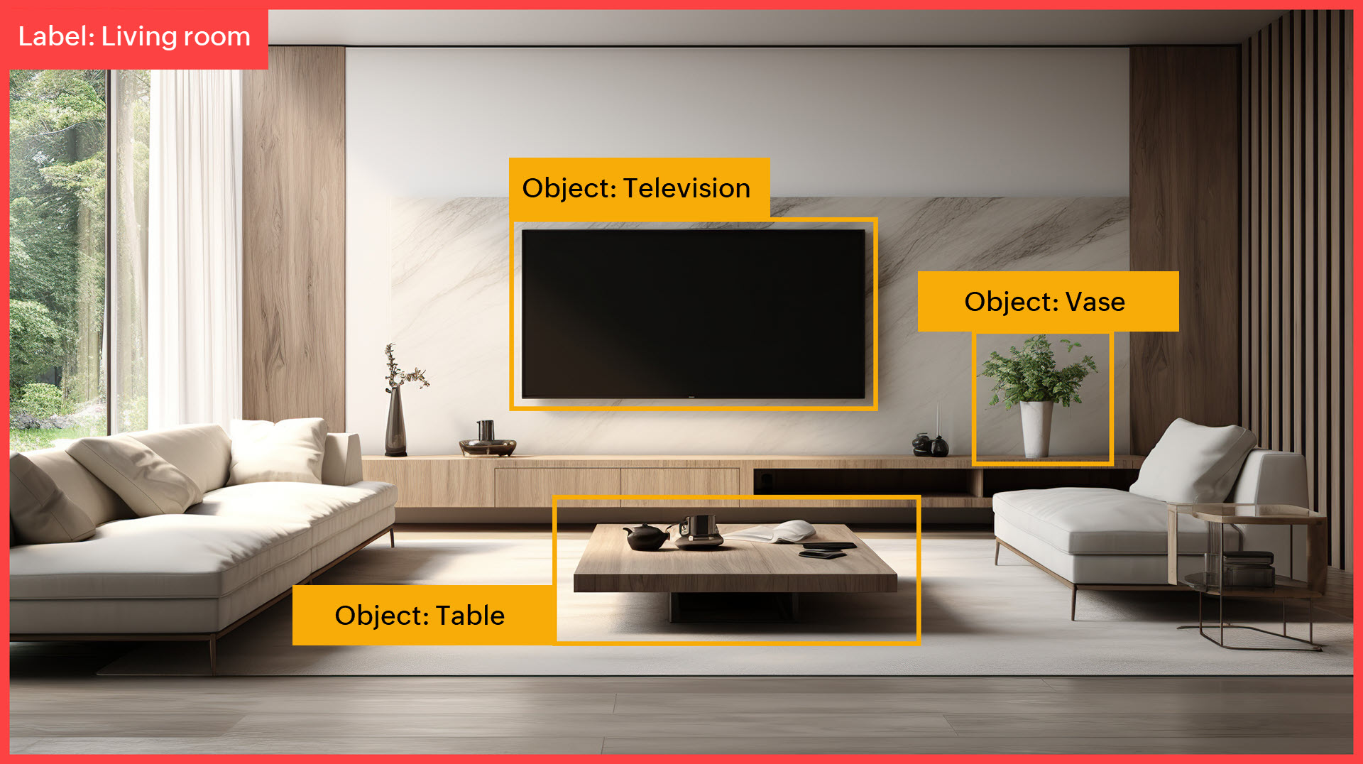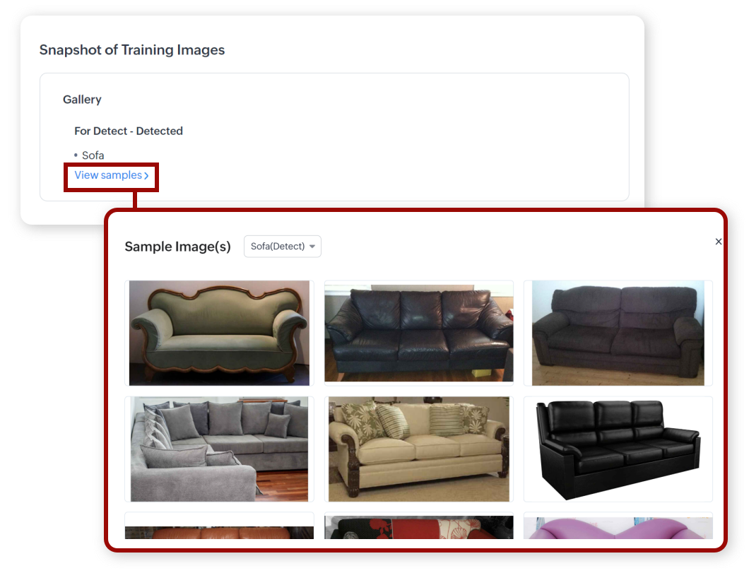 学習データとしてアップロードするすべての画像に、該当の対象物がはっきりと写っている必要があります。たとえば、対象物がソファーの場合、学習データとして、ソファーのみがはっきりと写っている画像をアップロードする必要があります。また、対象物がさまざまなアングルから撮影されていても識別できるようにするには、学習データとして、さまざまなアングルから対象物を撮影した画像をアップロードする必要があります。