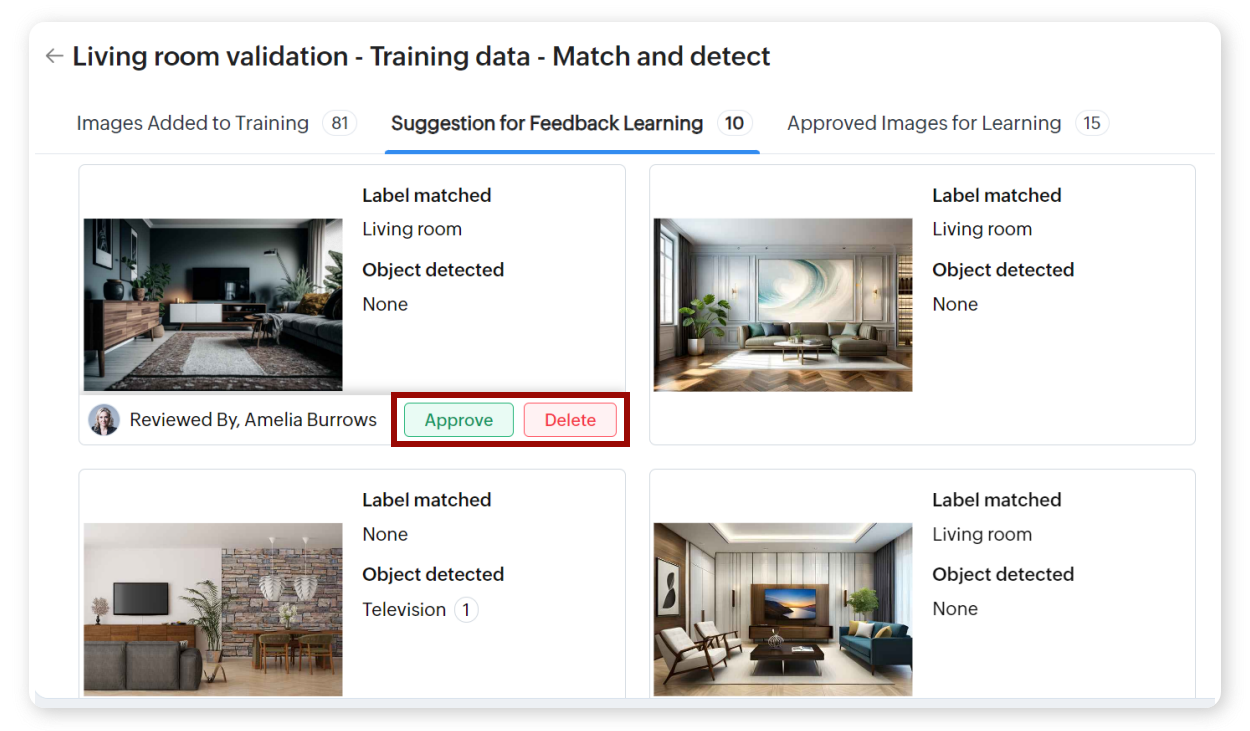 - 承認者によって提案された画像を学習データに追加する(ただし、画像検証ルールの設定内容に応じます)