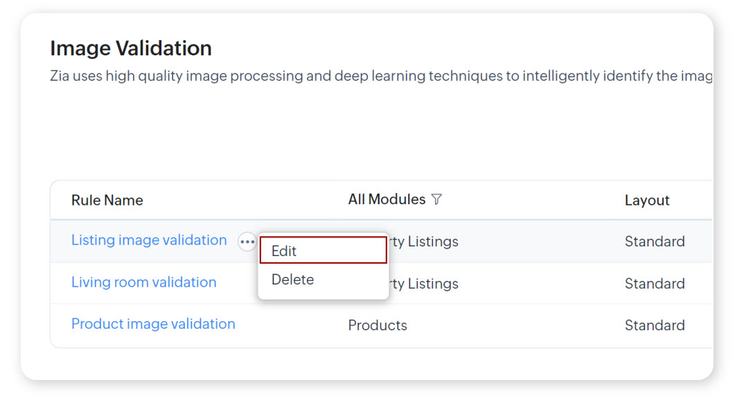 Zia画像検証は、ZohoのAIアシスタント「Zia」(ジア)による画像の検証機能です。この機能では、Ziaを学習データによってあらかじめトレーニングしておくことで、ZiaによってZoho CRM内の画像データが自動で検証されるようになります。Zoho CRMに適切な画像データのみを登録し、不適切な画像データを登録しないようにするのに役立ちます。