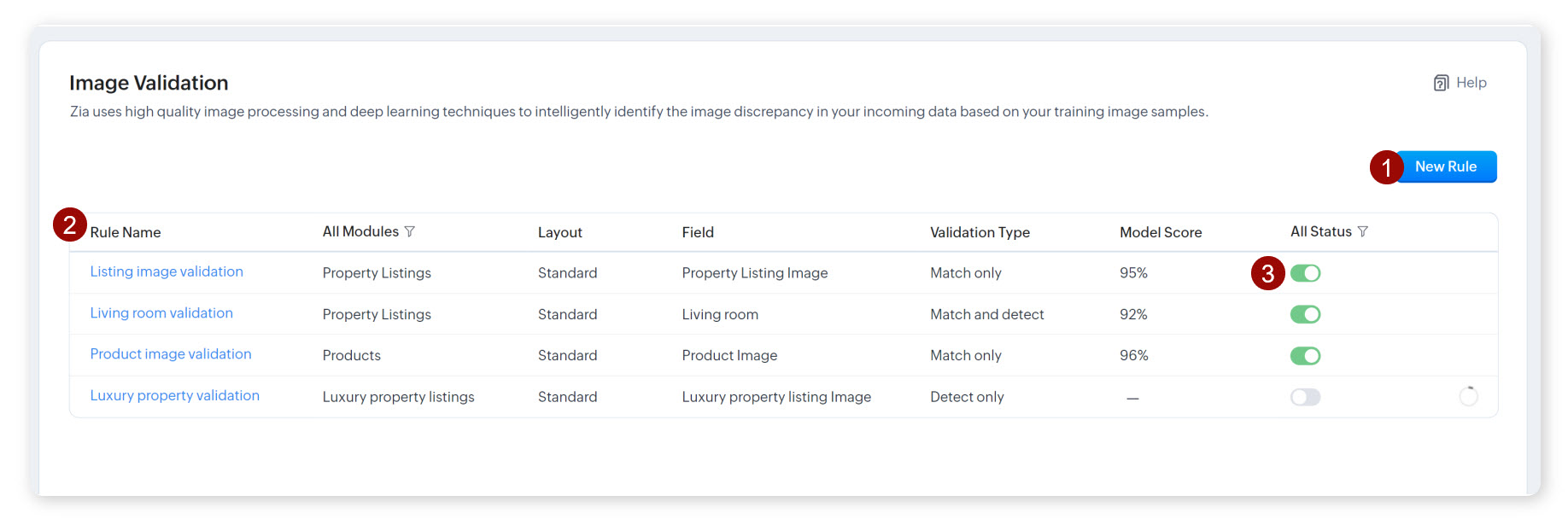 ルールの有効化/無効化:ルールを有効/無効にできます。ルールが有効である場合にのみ、画像検証が実行されます。