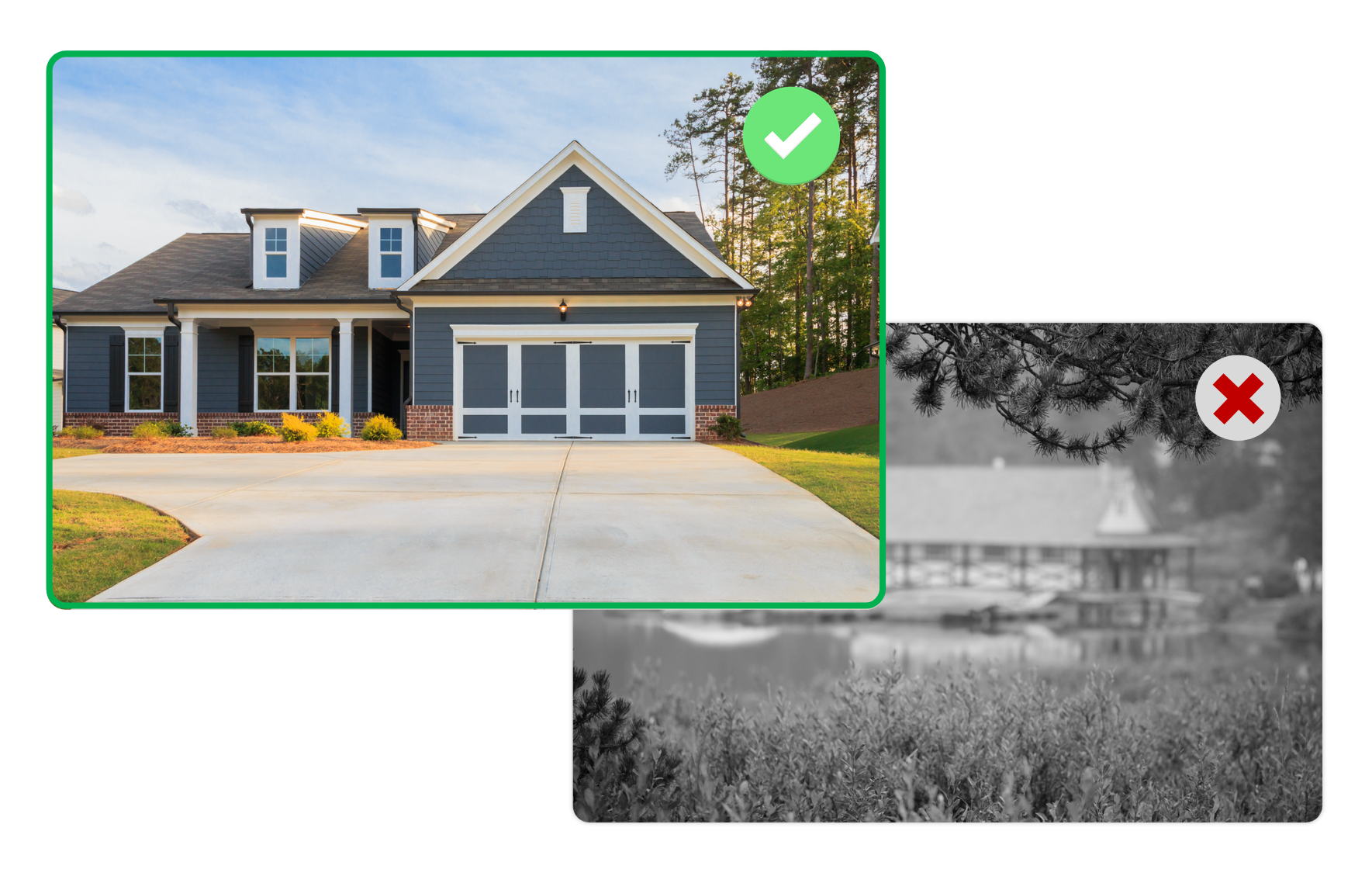 - [適切]:適切な画像をアップロードして、照合したい場合に選択します。たとえば、物件の全体像がはっきりと写っている画像が適切と識別されるようにしたい場合、[適切]を選択した上で、学習データとして、物件の全体像が写っている画像をアップロードします。