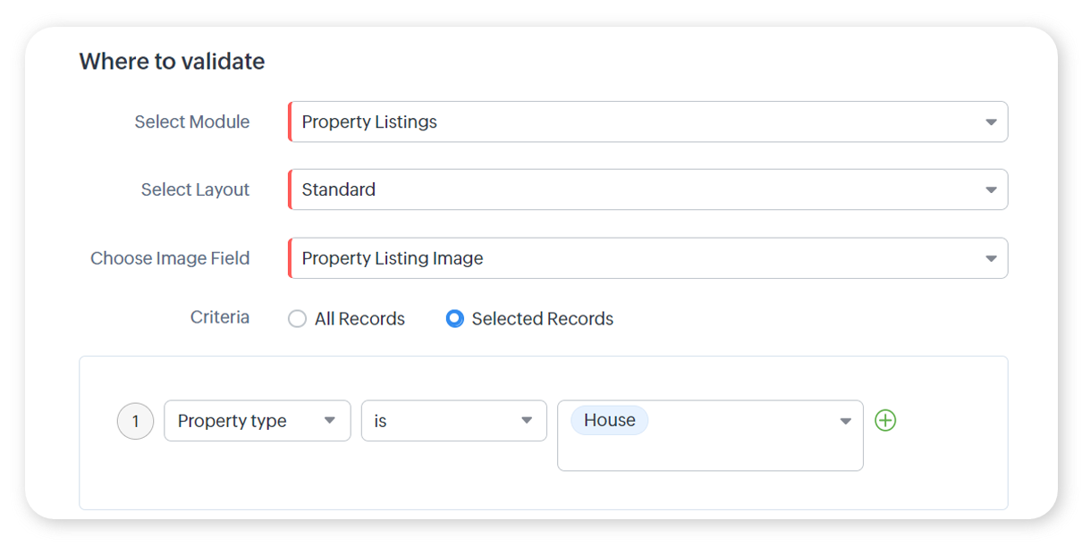 [条件]の欄で、[すべてのデータ]または[選択したデータ]のいずれかを指定します。[選択したデータ]を指定した場合、条件を満たすデータの画像のみが検証されます。