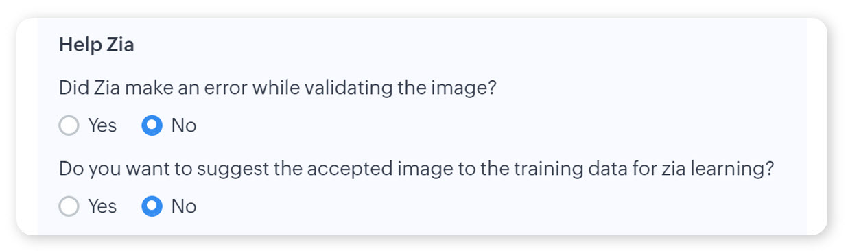 - [いいえ、学習のフィードバックは必要ありません。]:Ziaによって誤検出された画像は学習データに追加されません。