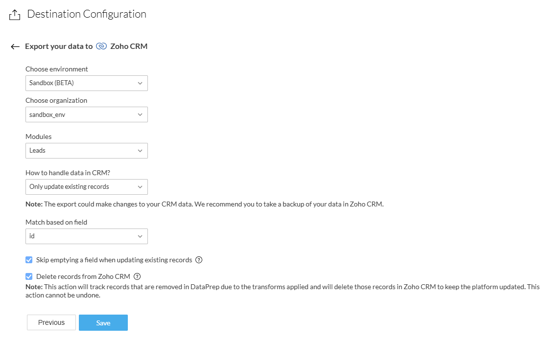 Zoho DataPrepからZoho CRMへの営業データのエクスポートがZoho CRMコネクターを使って可能です。Zoho DataPrepを活用して