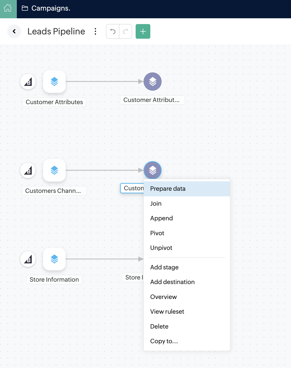 1.既存のパイプラインを開くか、パイプラインを作成し、ホームページ、Pipelinesタブ、またはWorkspacesタブから、データ追加オプションをクリックします。