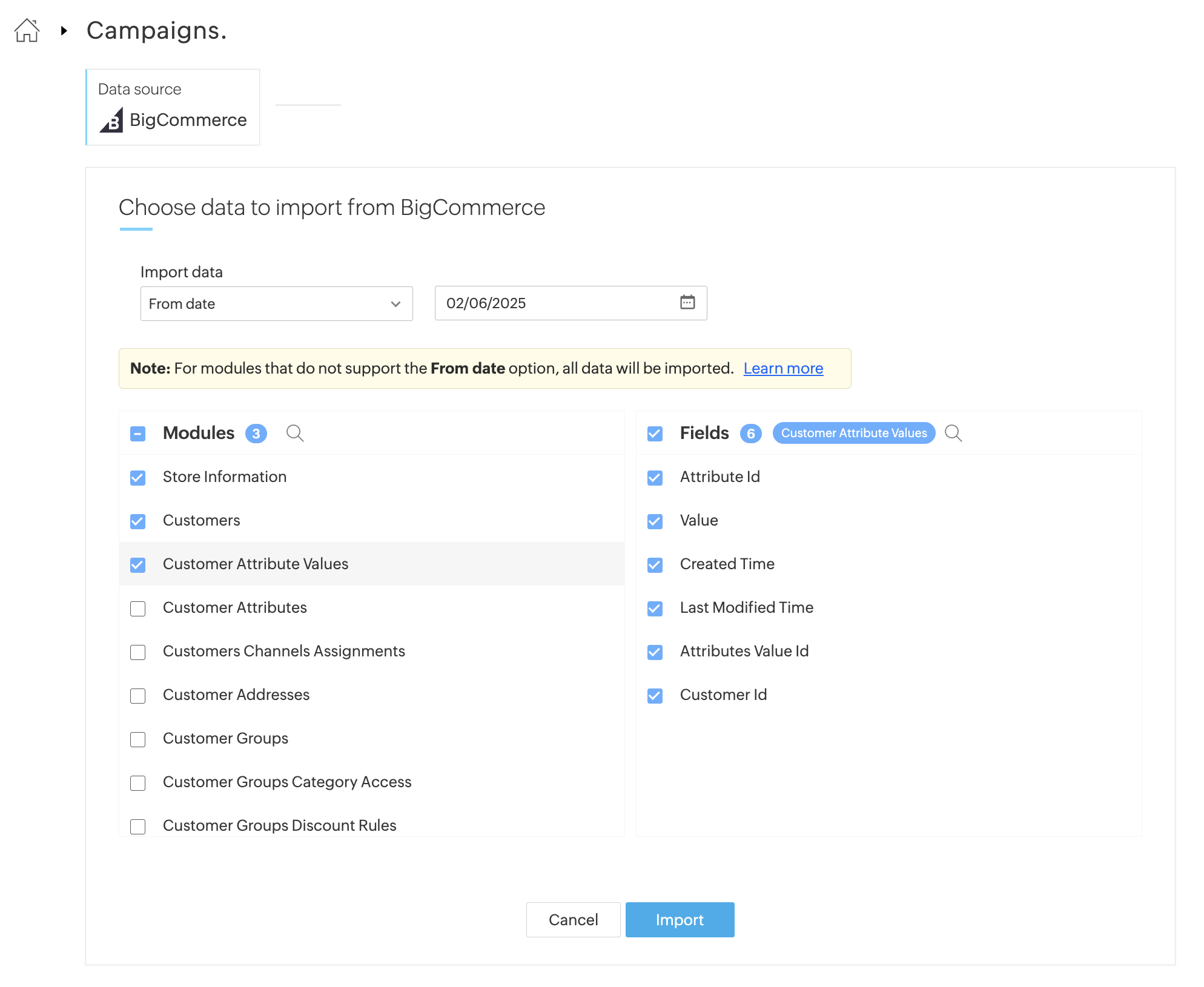 メモ: すでにBigCommerceからスケジュールを設定している場合は、インポート設定セクションの以前の設定に基づきデータが再読込されます。スケジュール編集オプションをクリックし、新しいスケジュールを設定してください。