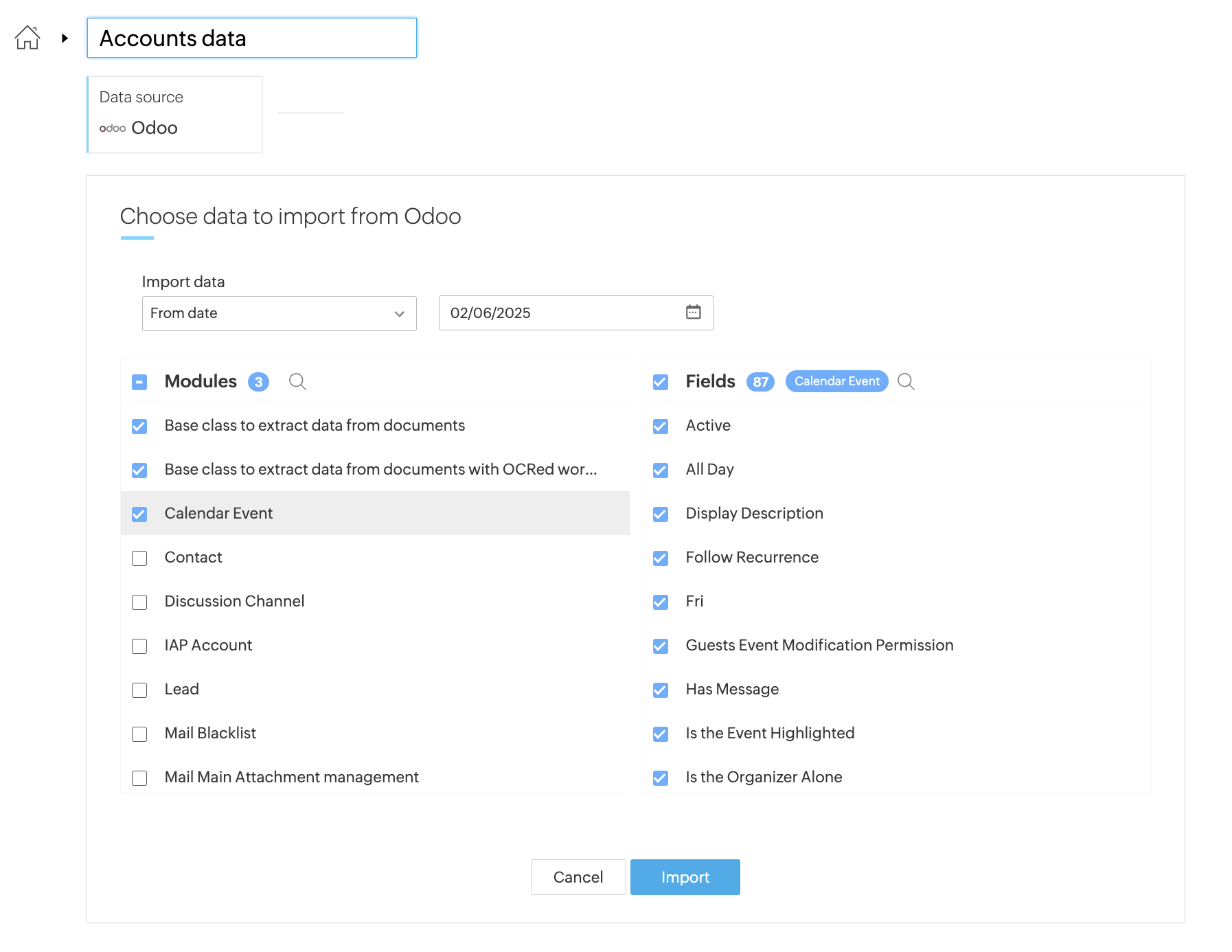 チェックボックスがオフの場合:インポートはスキップされ、data はインポートされません。