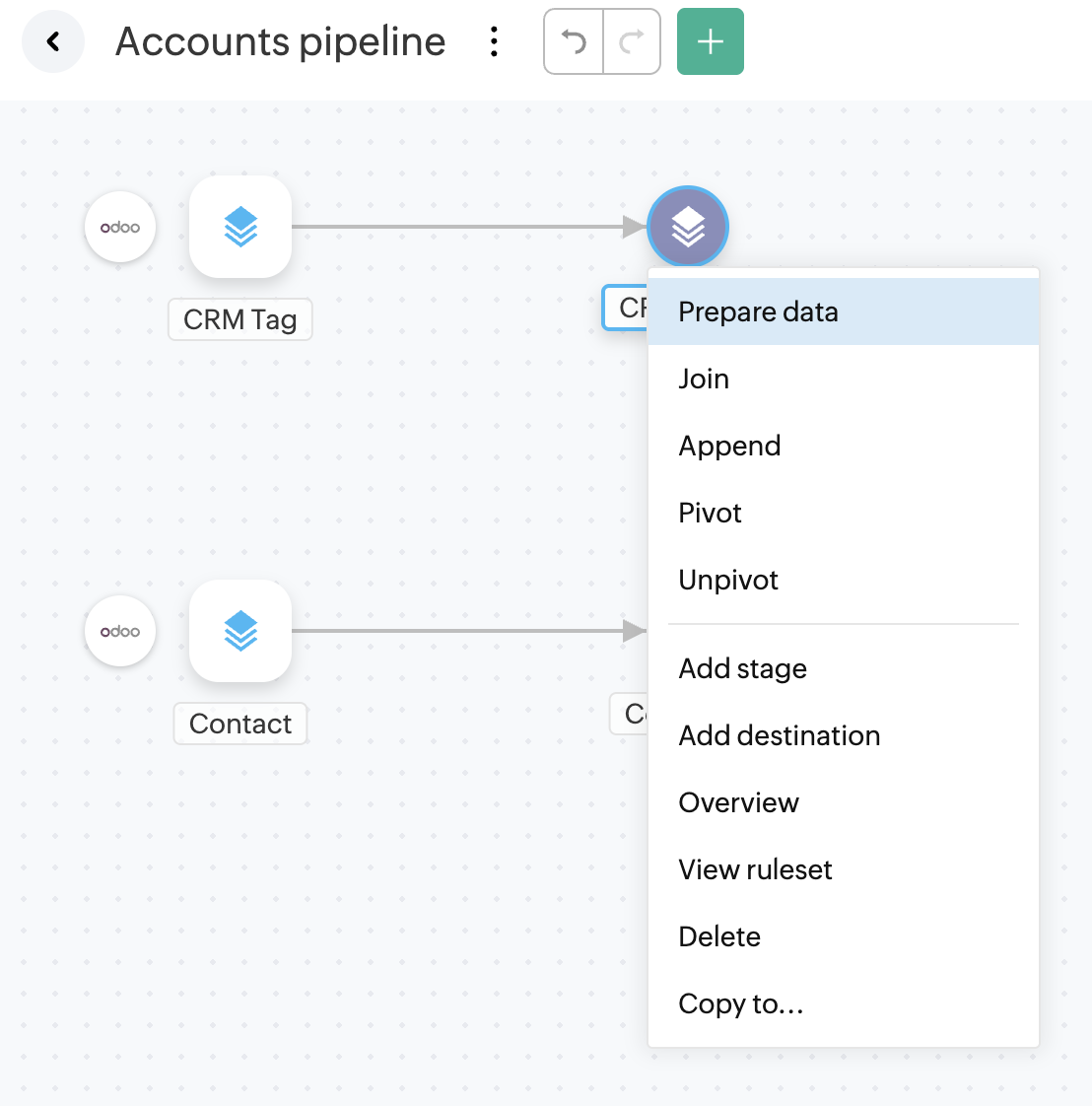 1.既存のパイプラインを開くか、パイプラインを作成します。「ホーム」ページ、「Pipelines」タブ、または「Workspaces」タブから、データの追加オプションをクリックします。