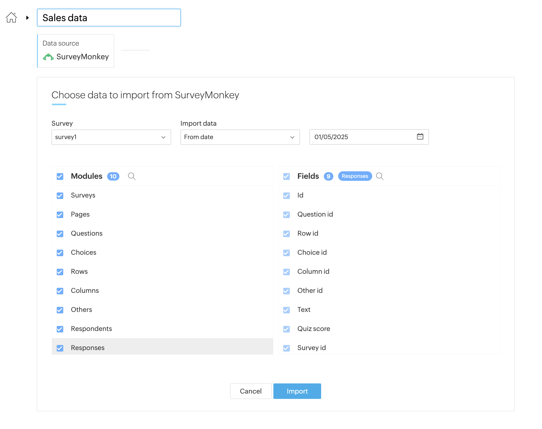 メモ:すでにSurveyMonkeyでスケジュールを設定している場合、インポート設定セクション内で編集スケジュールオプションをクリックし、新しいスケジュールを設定すると、以前の設定に基づいてデータが再読み込みされます。