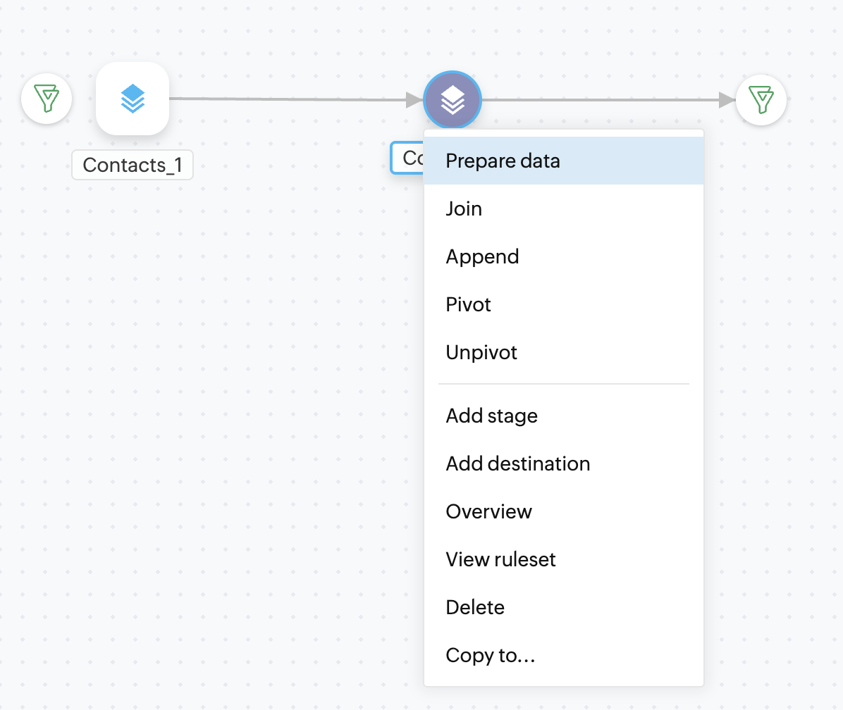 Bigin を宛先として設定したステージの DataPrep Studio ページに移動します。