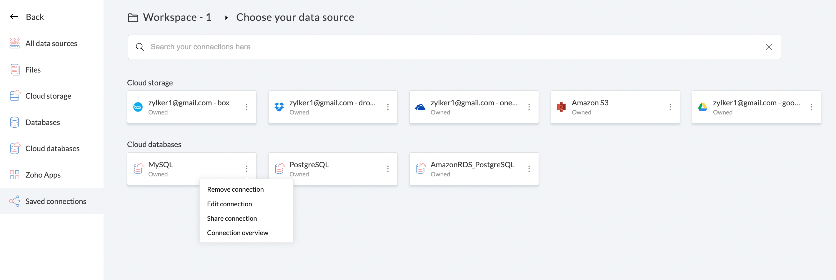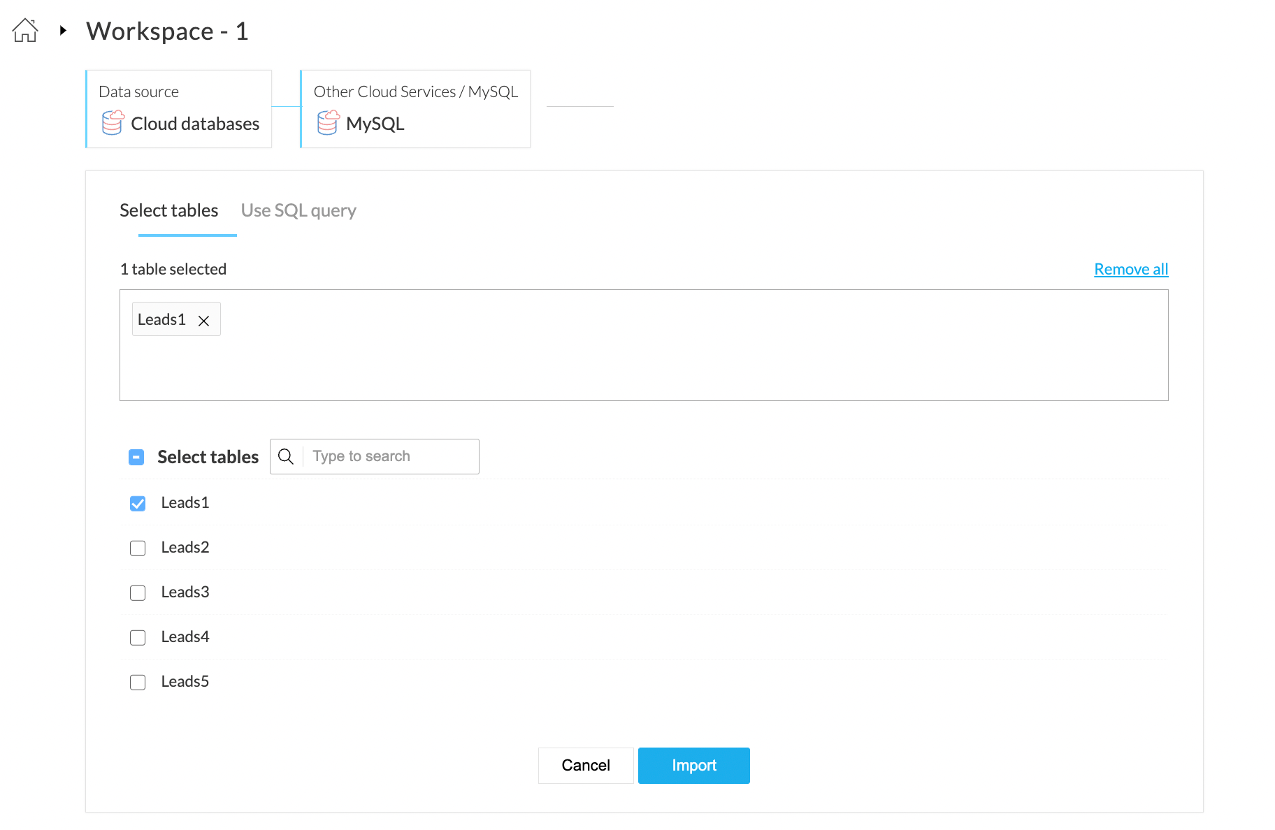 Zoho DataPrep では、MySQL などの他のクラウドサービスからデータをインポートすることができます。MySQL は、Oracle 社が開発したリレーショナルデータベース管理システムで、構造化クエリ言語(SQL)を基盤としています。
