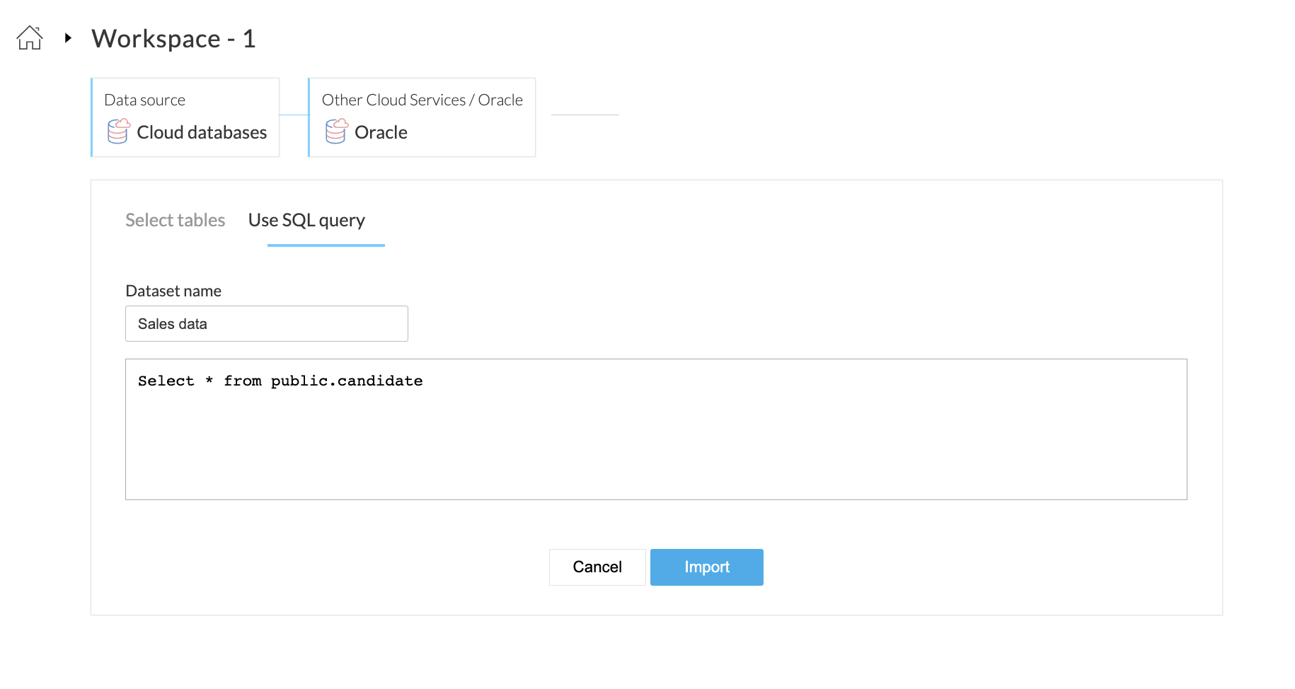 クエリを使用してデータベースからデータをインポートする場合、増分フェッチオプションは利用できません。こちらをクリックして、クラウドデータベースの増分フェッチについて詳しくご覧ください。