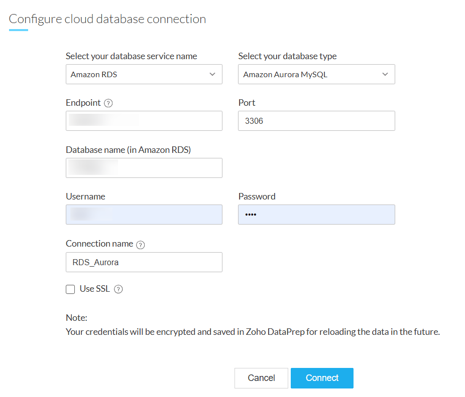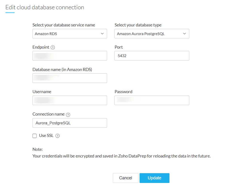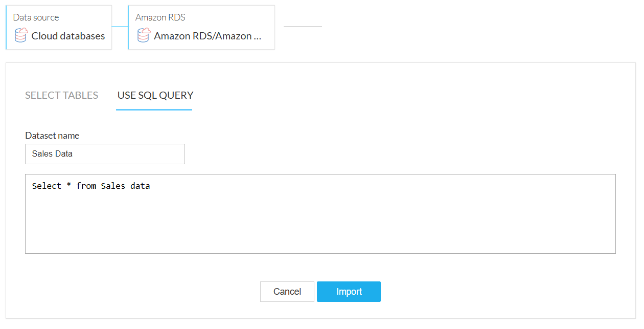Zoho DataPrepは、クラウドデータベースであるAmazon RDSからのデータインポートに対応しています。Amazon RDSはAmazon Relational Databaseサービスとしても知られ、データベースの設定、運用、スケーリングを支援します。