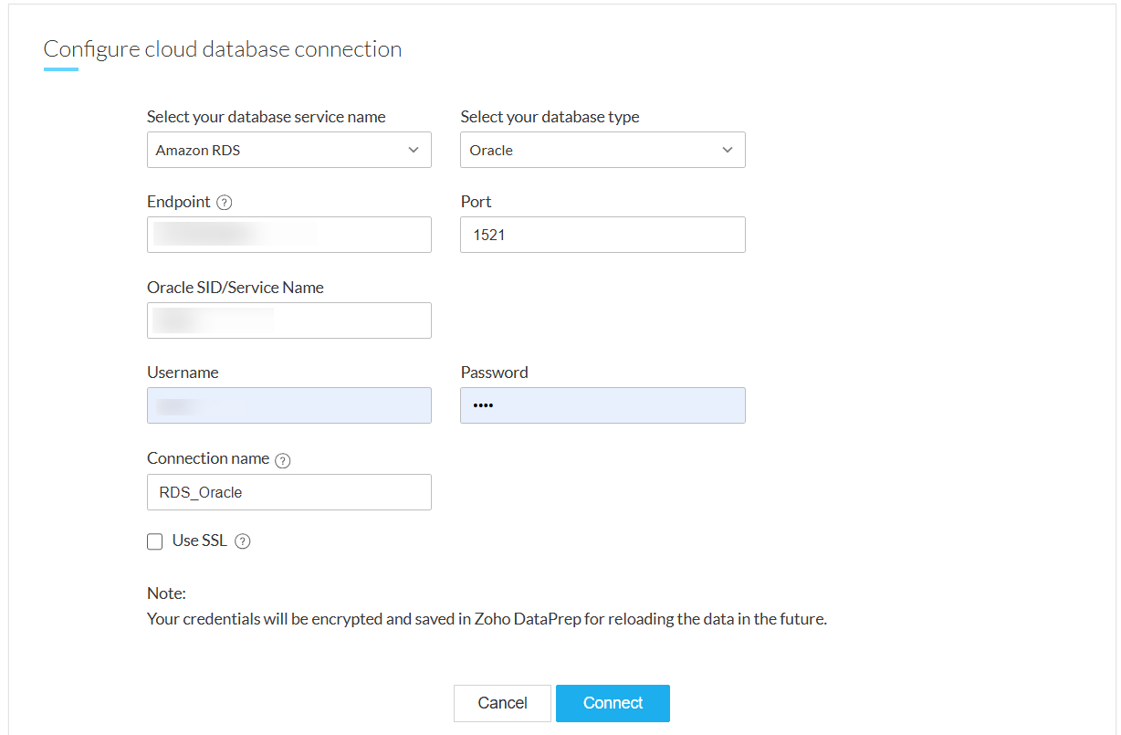 メモ:Oracle データベースへ接続するには、接続権限および SELECT_CATALOG_ROLE 権限を持つユーザーが必要です。
