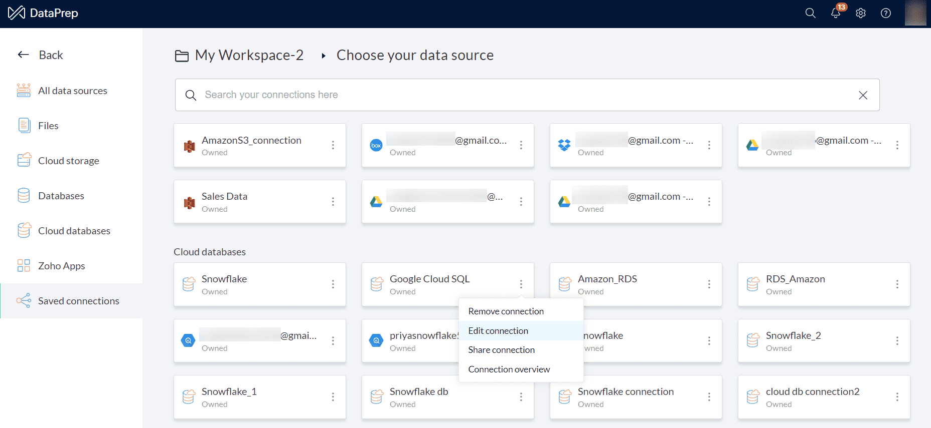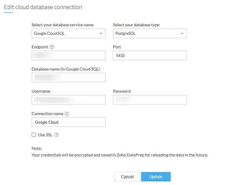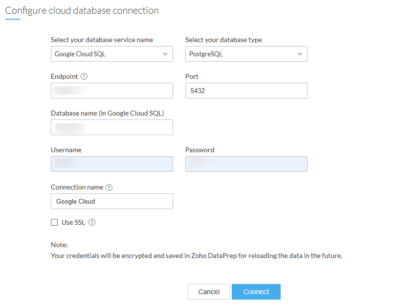 住所 をZoho DataPrepサーバーのIP住所に置き換えてください。例: 192.168.1.1。