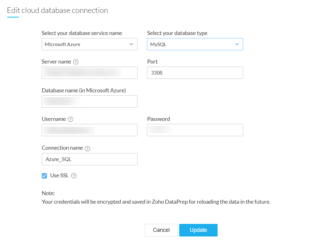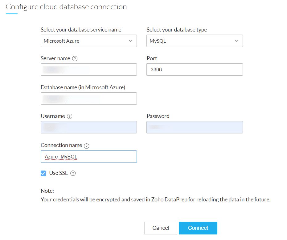 Zoho DataPrepはSQL認証のみ対応しているため、必ずSQL認証を使用していることを確認してください。