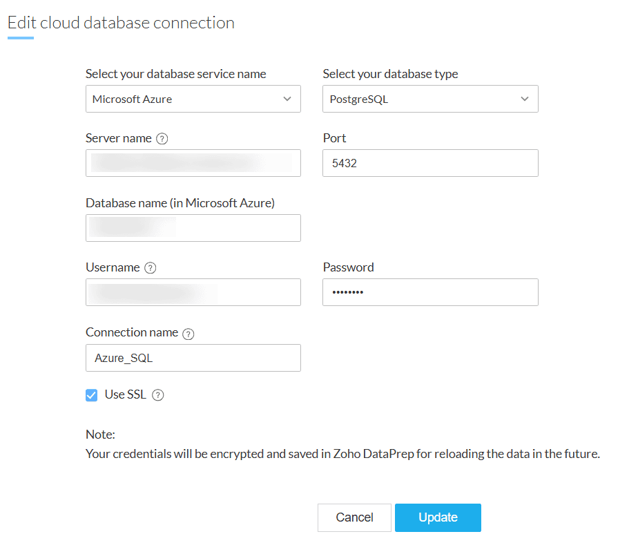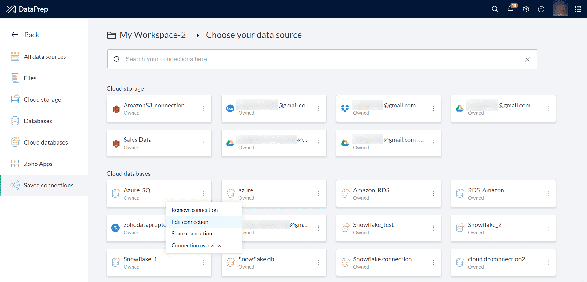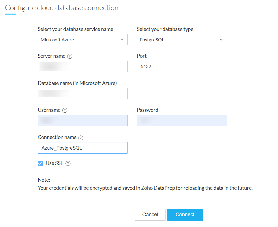 IP 住所をZoho DataPrepサーバーのIP 住所に置き換えてください。例: 192。168。1。1.