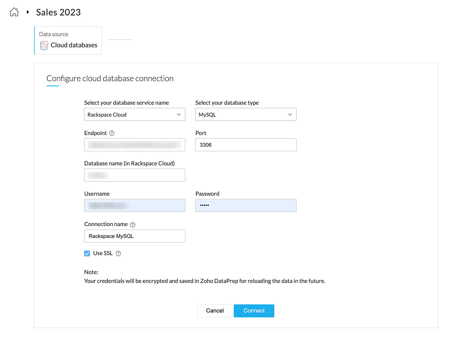 メモ: 接続設定は今後データをインポートする際に保存されます。認証情報は安全に暗号化されて保存されます。
