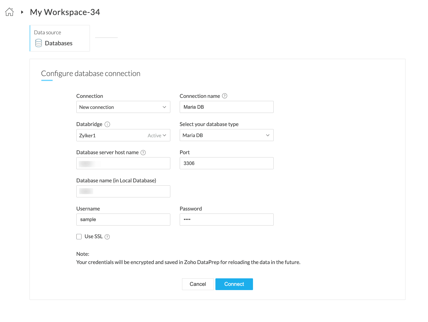 2. データベースへの正しいログイン認証情報をお持ちであることをご確認ください。ベストプラクティスとして、対象のデータベース管理ソフトウェア(各データベースに対応したもの)を利用し、Zoho DataPrep サーバーから対象データベースへの接続をお試しください。