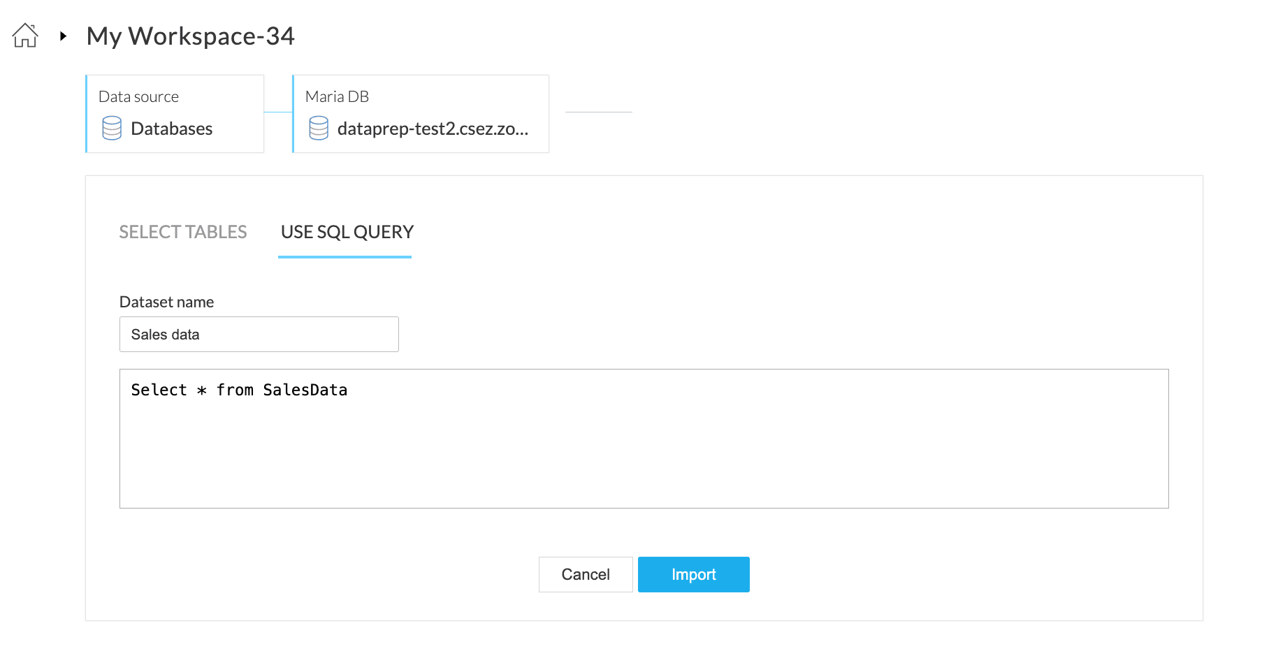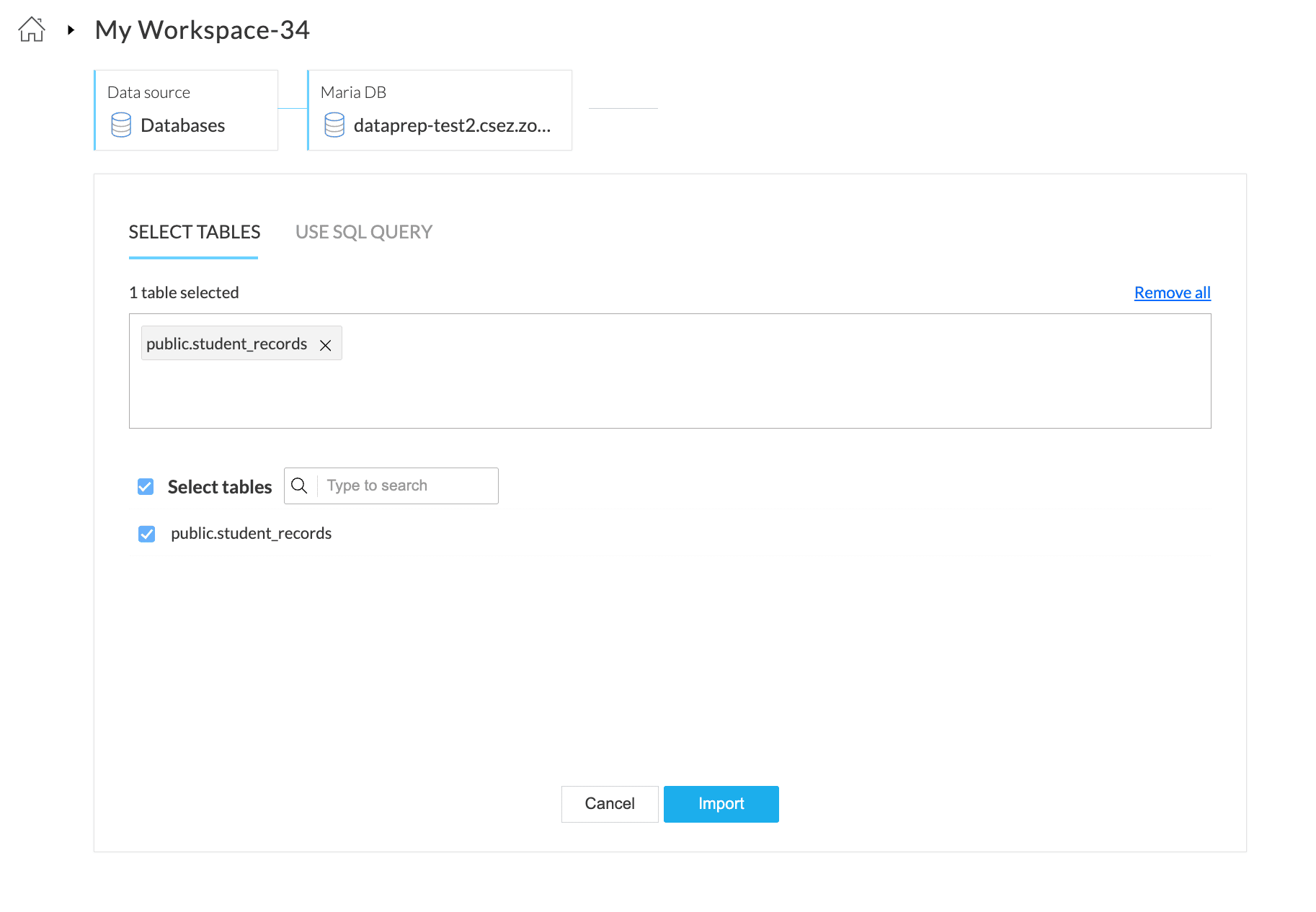 1. Zoho DataPrep サーバーにデータベースの読み取り権限を付与してください。