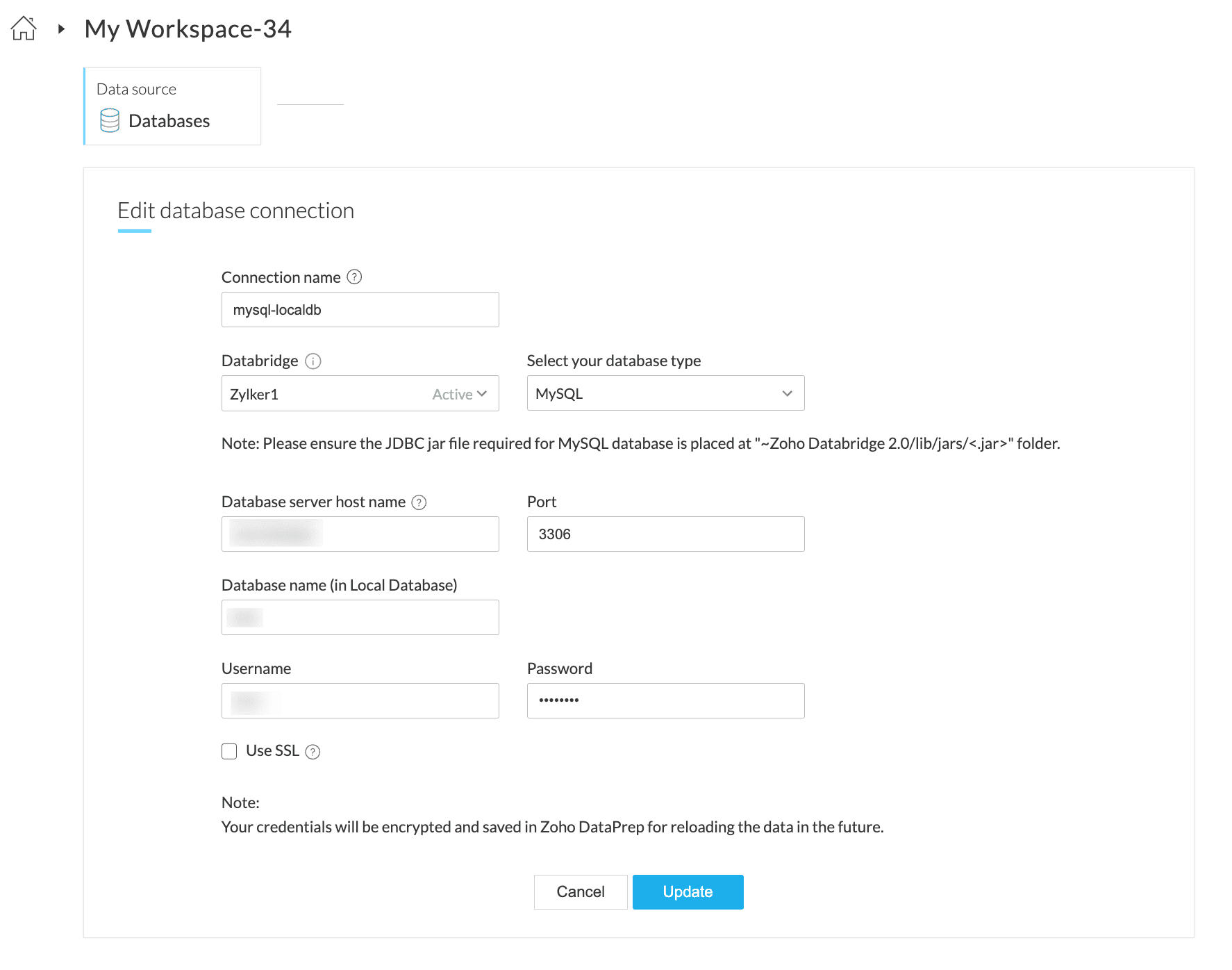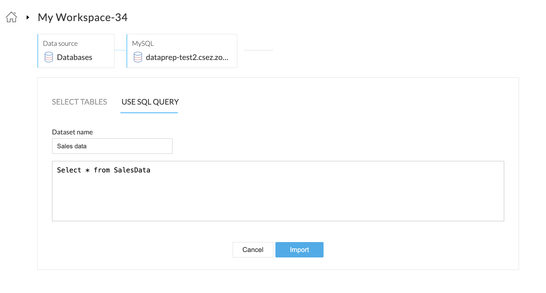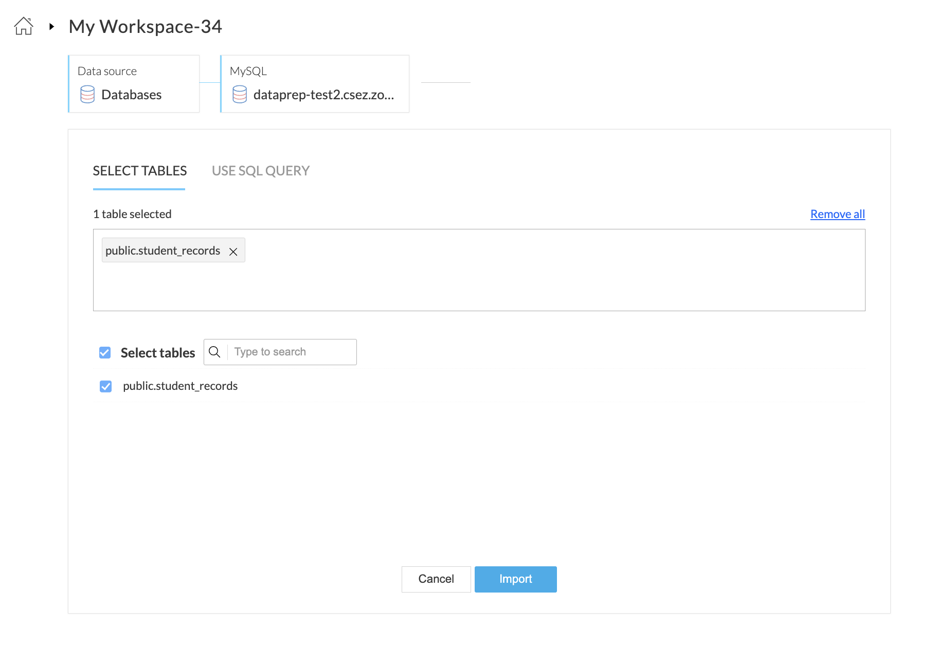 1. Zoho DataPrep サーバーにデータベースの読み取り権限を付与してください。